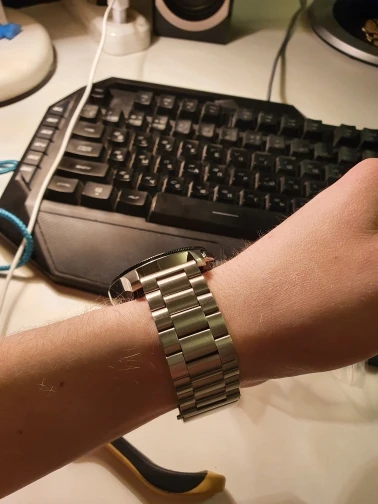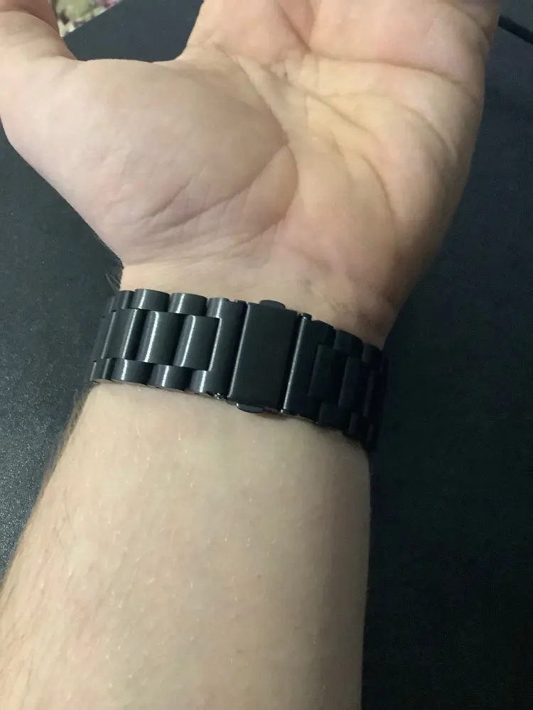 Точное описание и изображения. Доставка в хорошем состоянии и доставка в течение 14 дней. Идеально подходит для Samsung Galaxy Watch3, и ремень выглядит точно по вашей цене. Полезный, очень подходит для удаления штифтов с оставшимися звеньями. Хорошая покупка удовлетворительная.