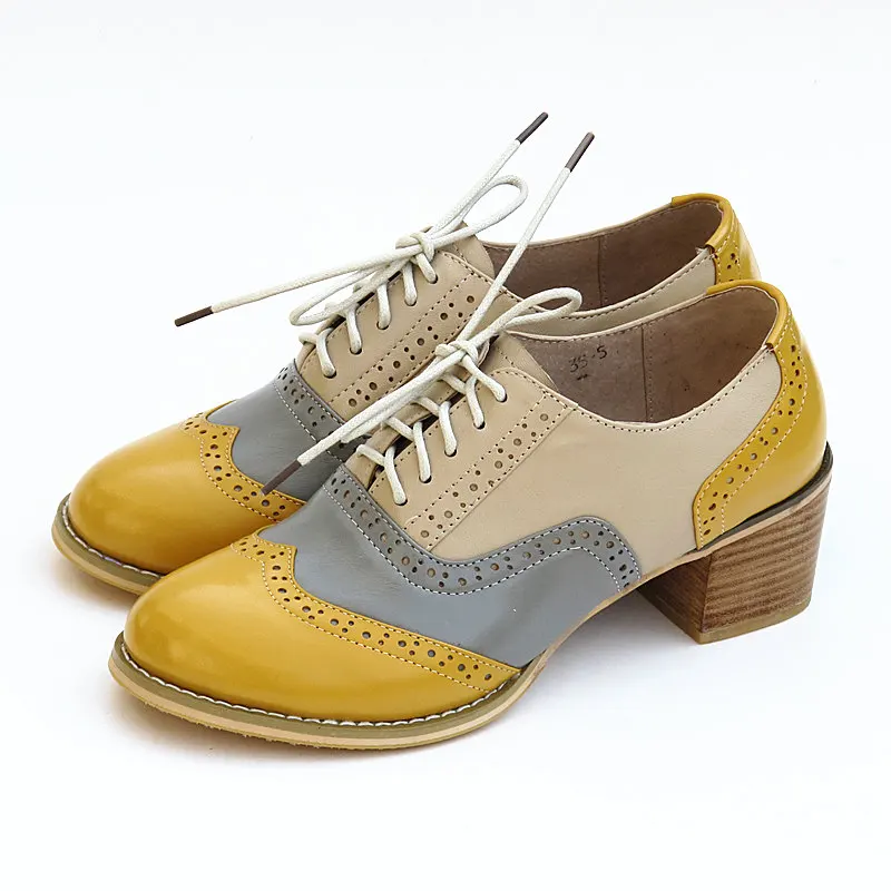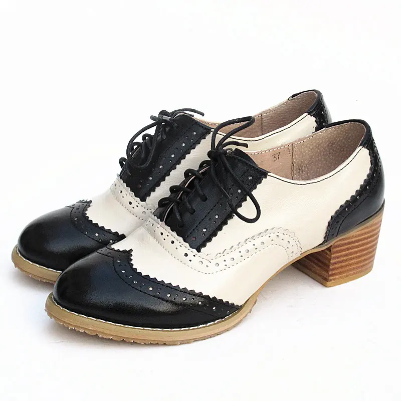 Женские туфли-оксфорды; Винтажные женские туфли-оксфорды из натуральной кожи на толстом каблуке в стиле ретро; Черные и коричневые туфли; 2020