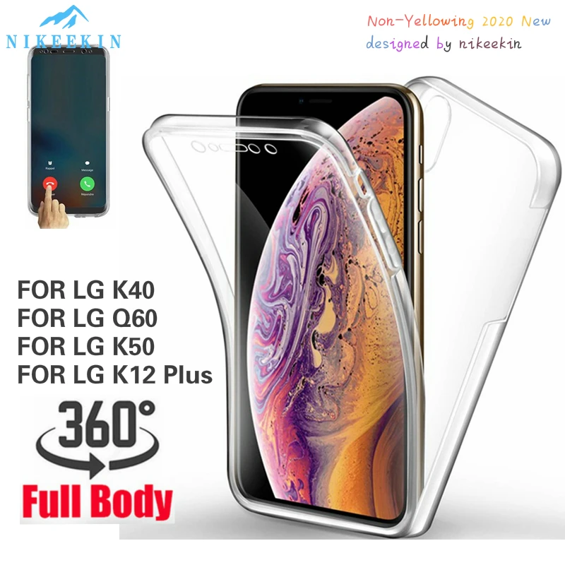 Двойной силиконовый бампер 360 для LG K50, LG Q60, LG K40, K12 Plus, мягкий прозрачный противоударный чехол из поликарбоната и ТПУ для всего корпуса, чехол для телефона