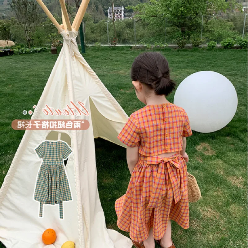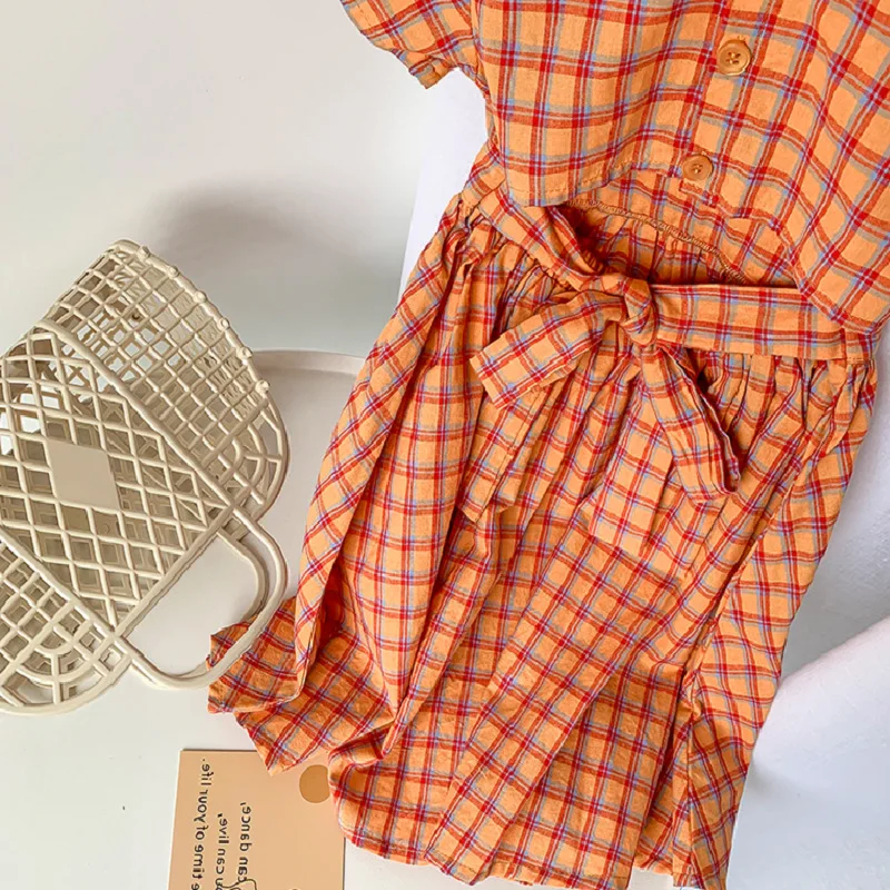 Платье в клетку с поясом для девочек; Платье принцессы; Новая летняя детская одежда; Платье принцессы; Платья для девочек