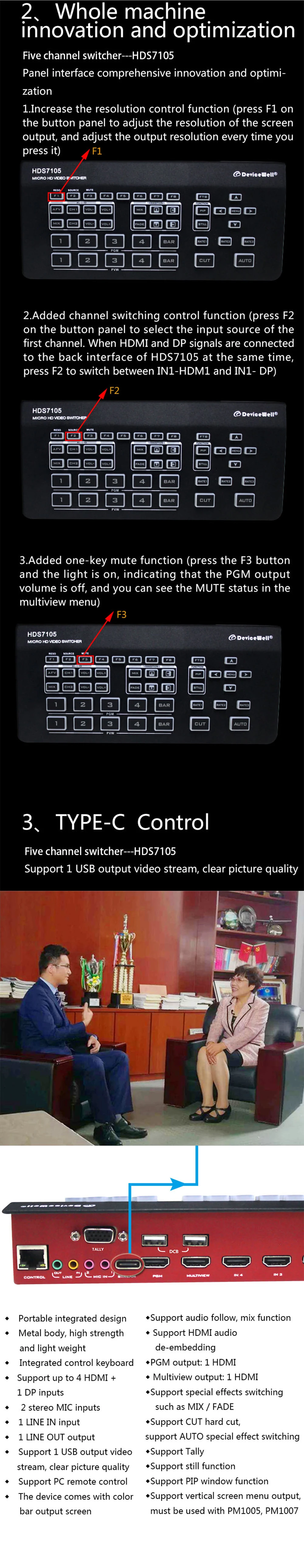 Видеопереключатель DeviceWell HDS7105-V21 hds7105 _ 2021, новая вер...