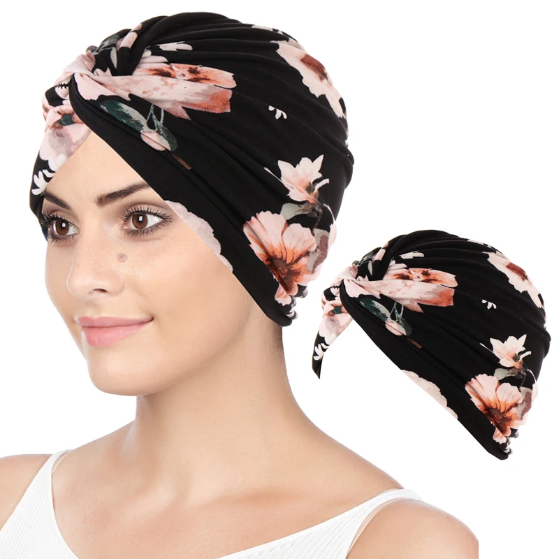 Женская шапка с цветочным принтом, мусульманский хиджаб, женская ша...