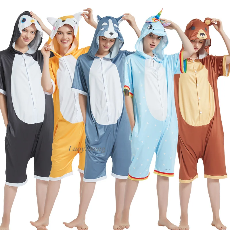 Пижама кигуруми с коротким рукавом для мальчиков и девочек, летний ...
