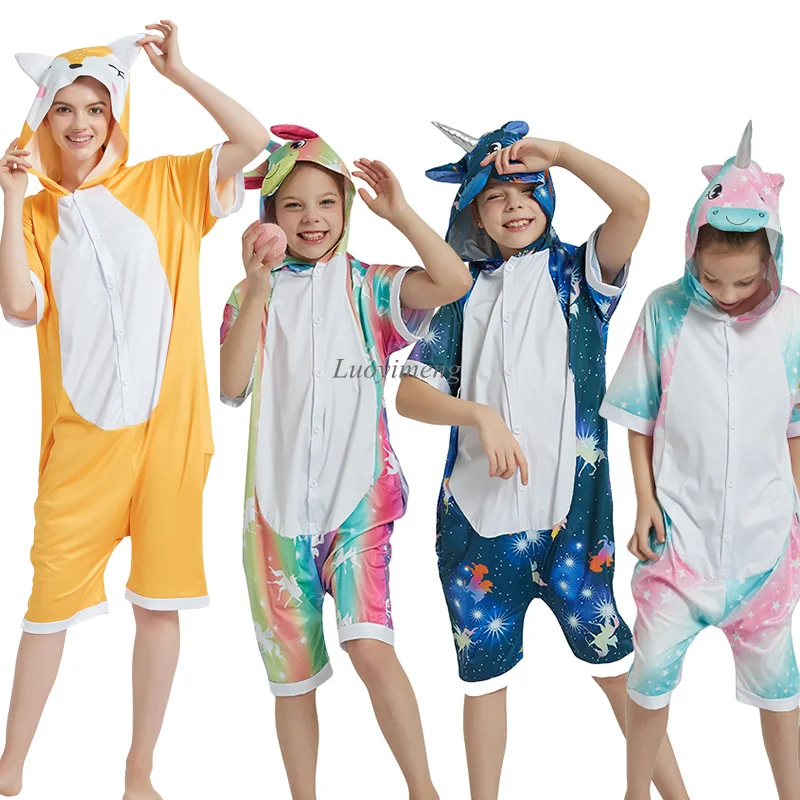 Летняя Пижама-Кигуруми для девочек и мальчиков, комбинезон-кигуруми...