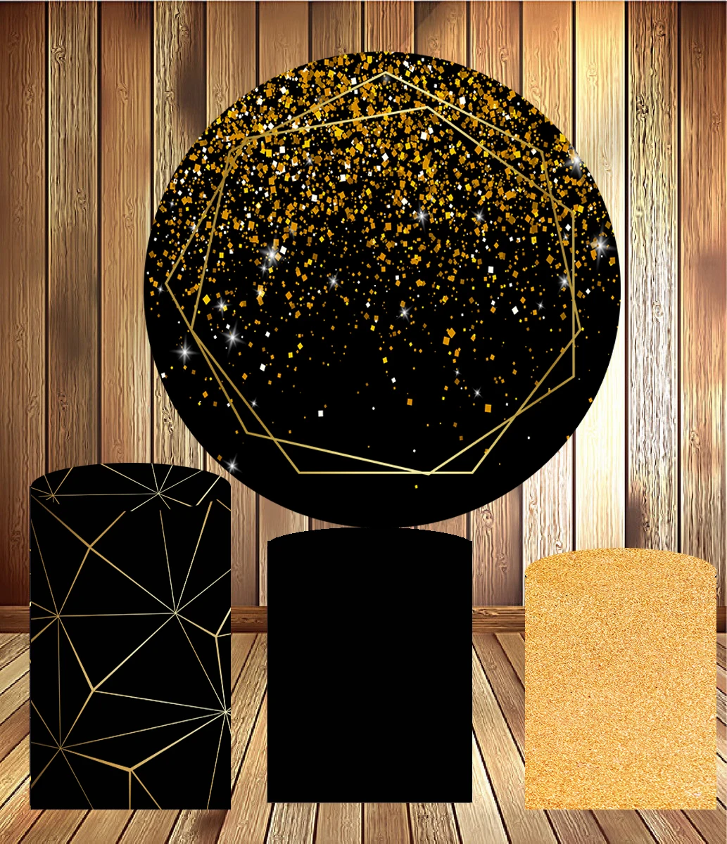 Круглый фон для фотосъемки Золотой блестящий Блестящий баннер для вечеринки в честь Дня Рождения Круглый фон для фотосъемки десертный торт стол виниловый