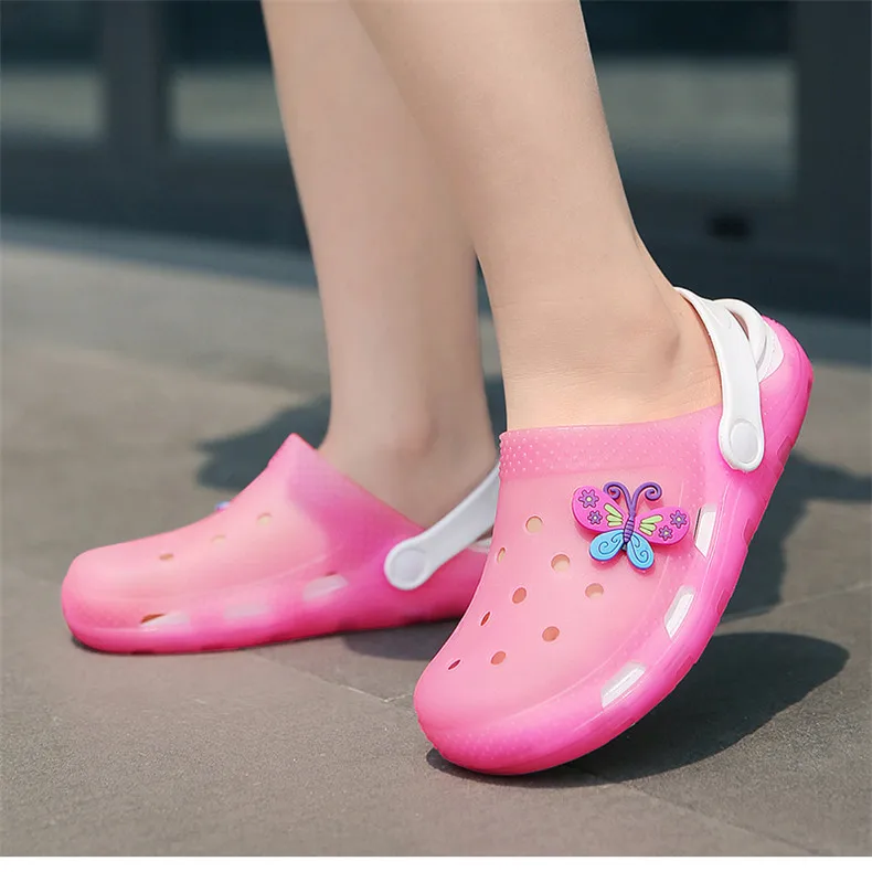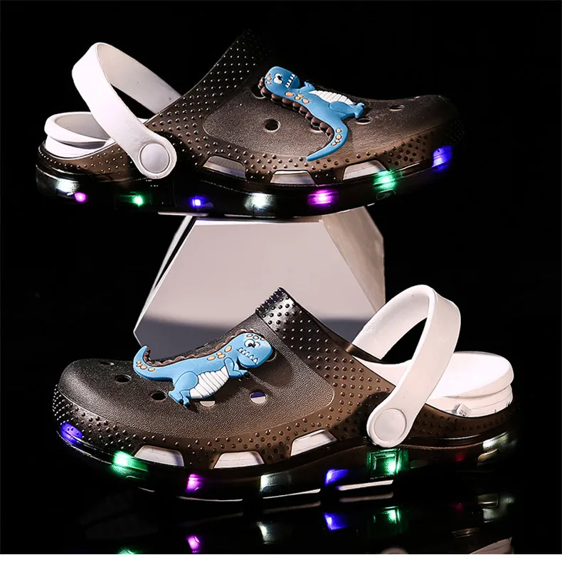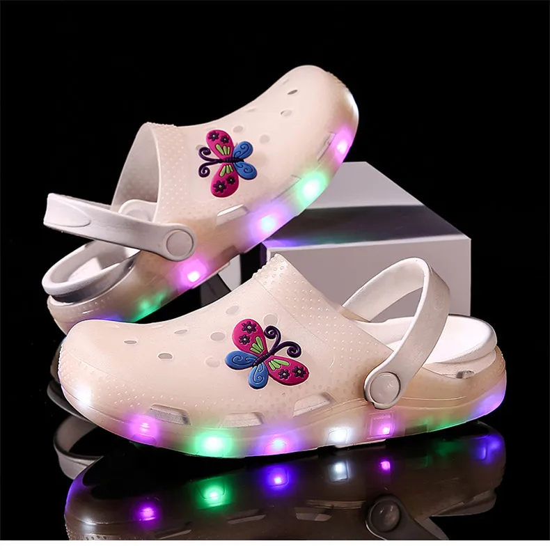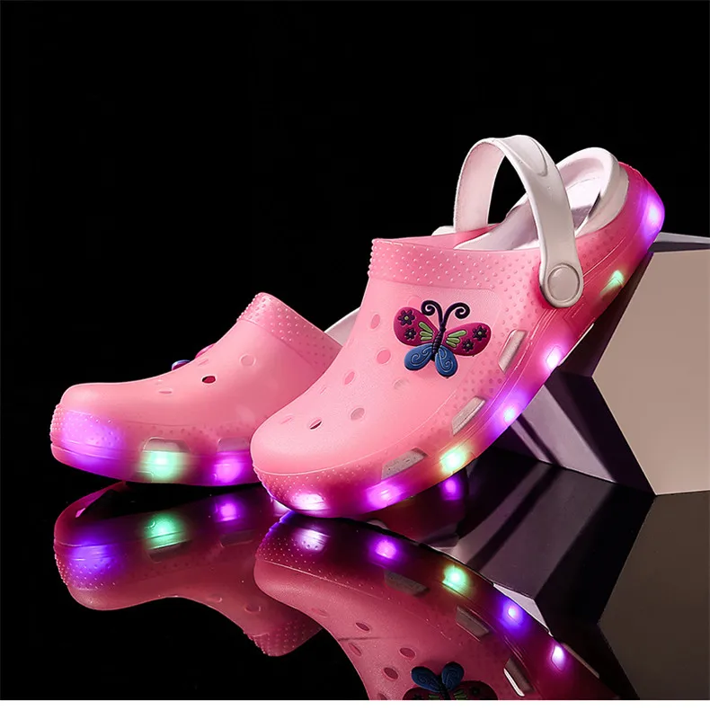 Легкие садовые кроссовки для девочек и мальчиков, светодиодная Летняя обувь светильник клоги, модные тапочки, 2022