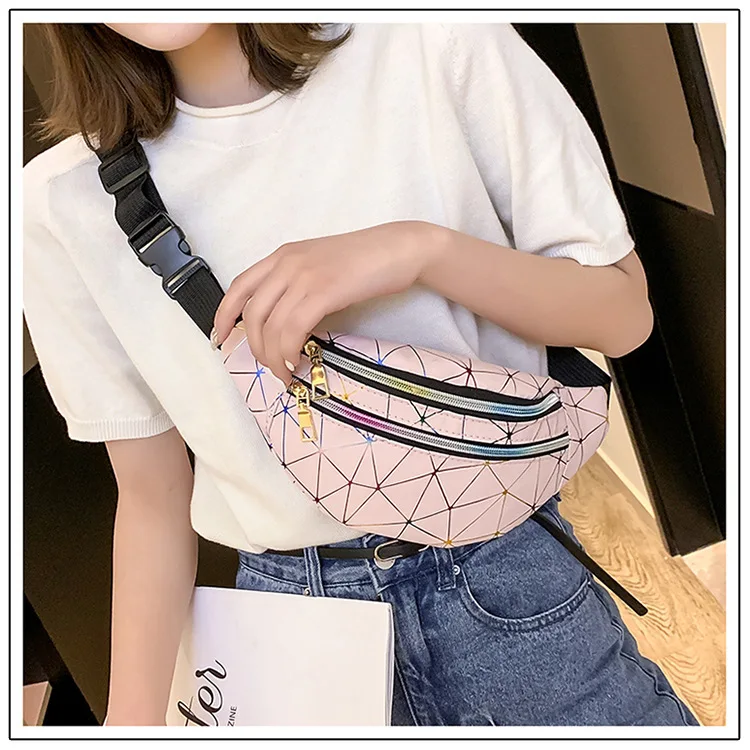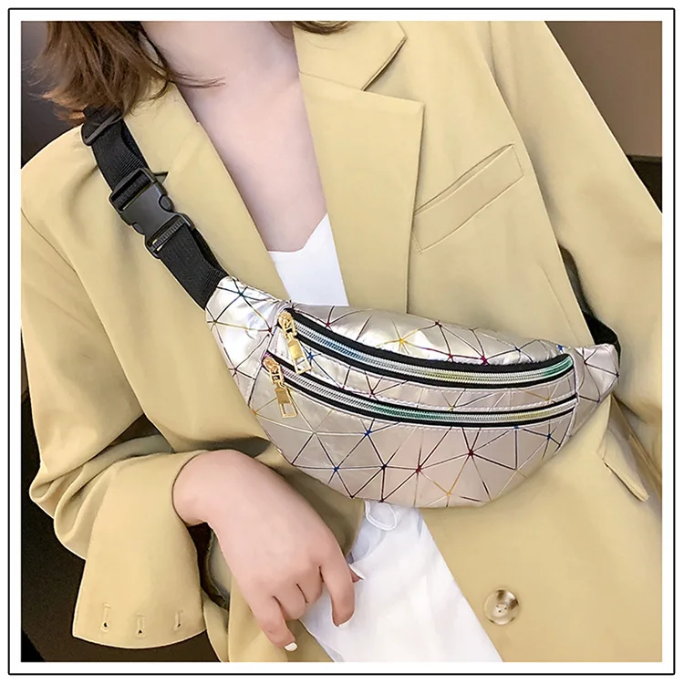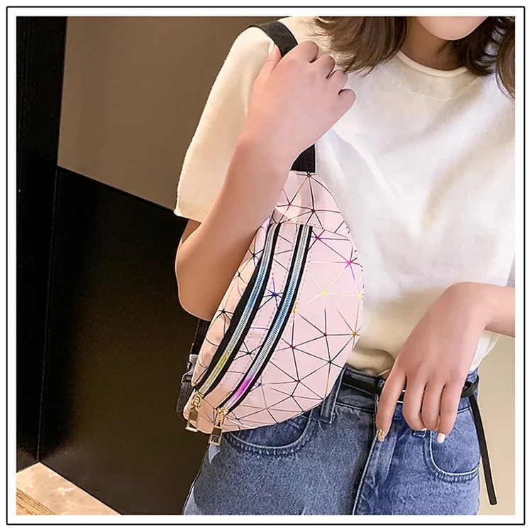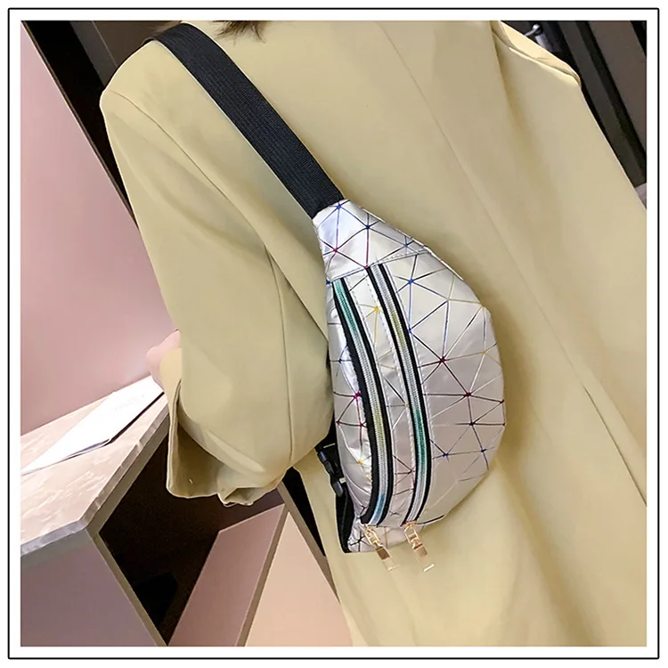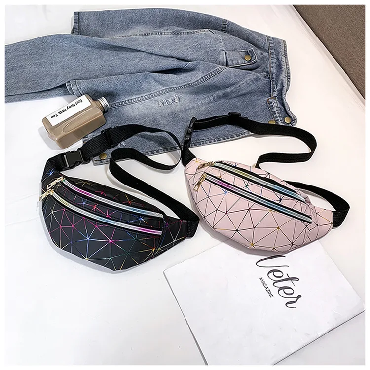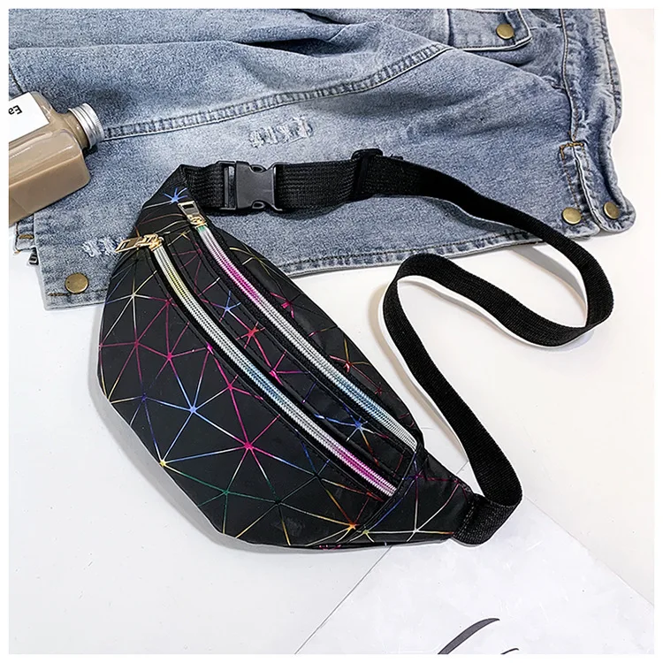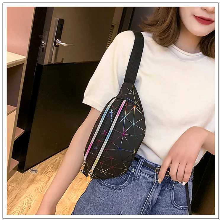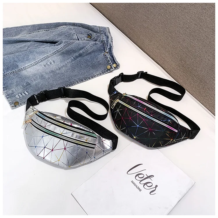 Забавная Лазерная голографическая сумка для женщин, Тонкий блестящий неоновый поясной кошелек из ПВХ, водонепроницаемый дорожный мешочек для девушек, 2019