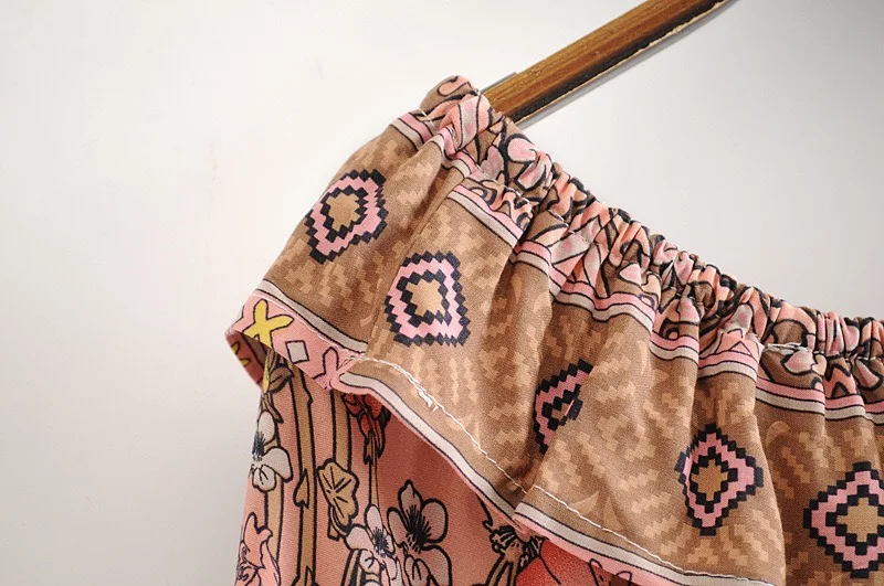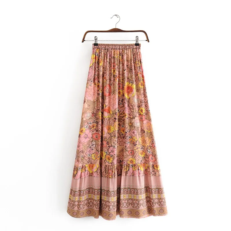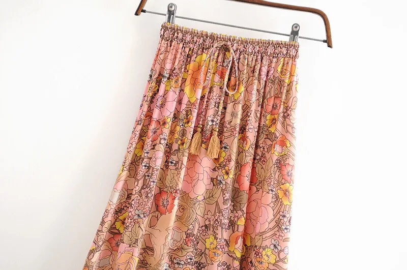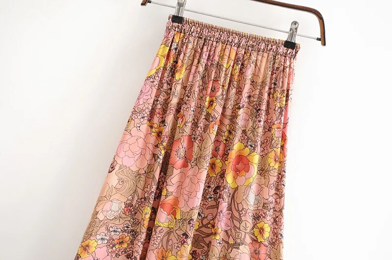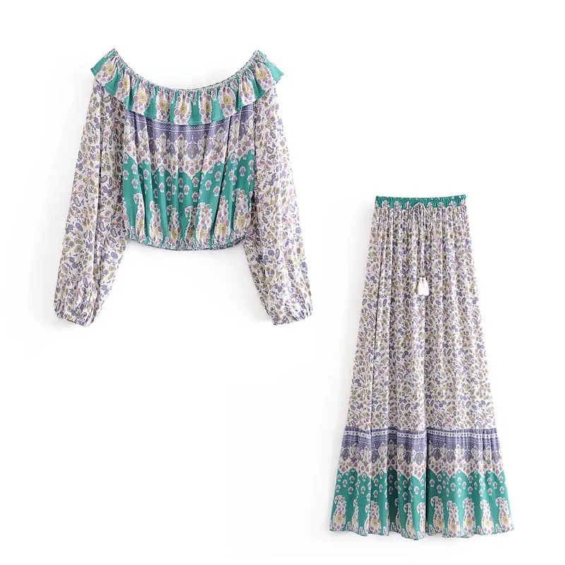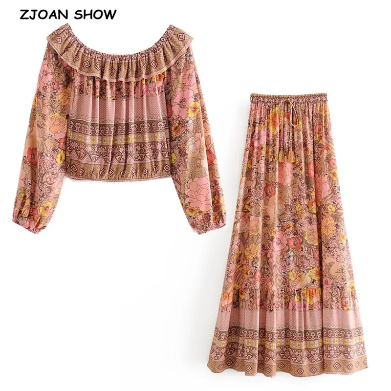 Женский праздничный комплект из 2 предметов, эластичный укороченный топ с цветочным принтом и вырезом лодочкой и оборками, оранжевая длинная юбка-макси с поясом на резинке, короткая рубашка в стиле бохо