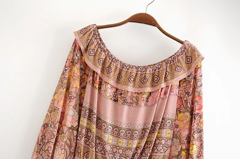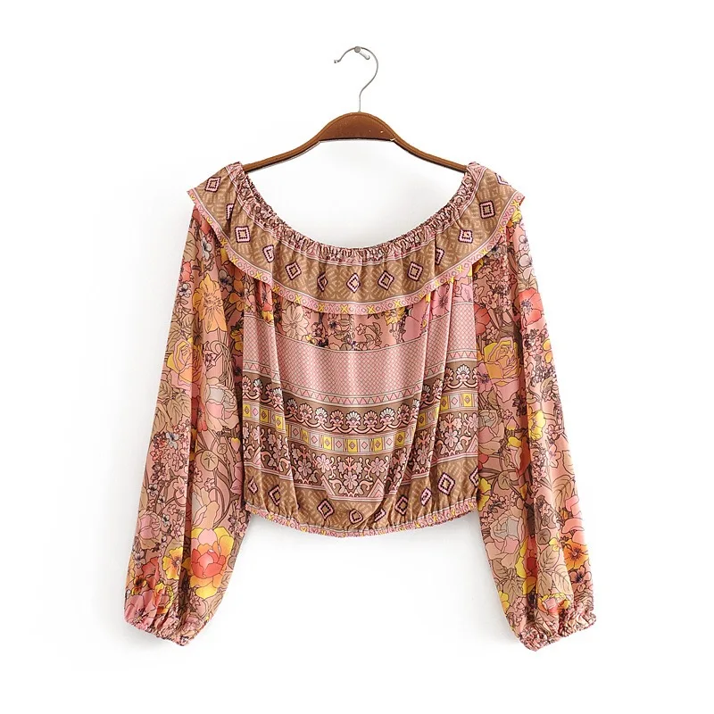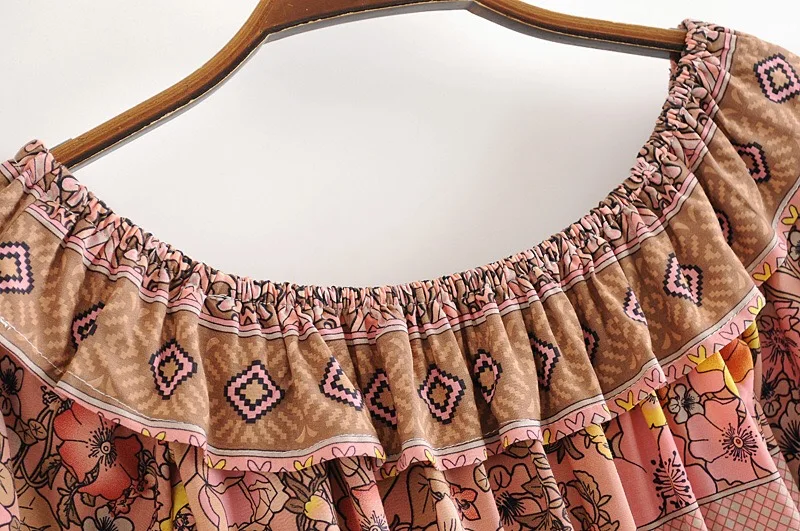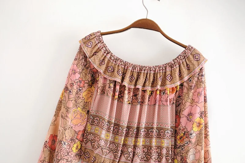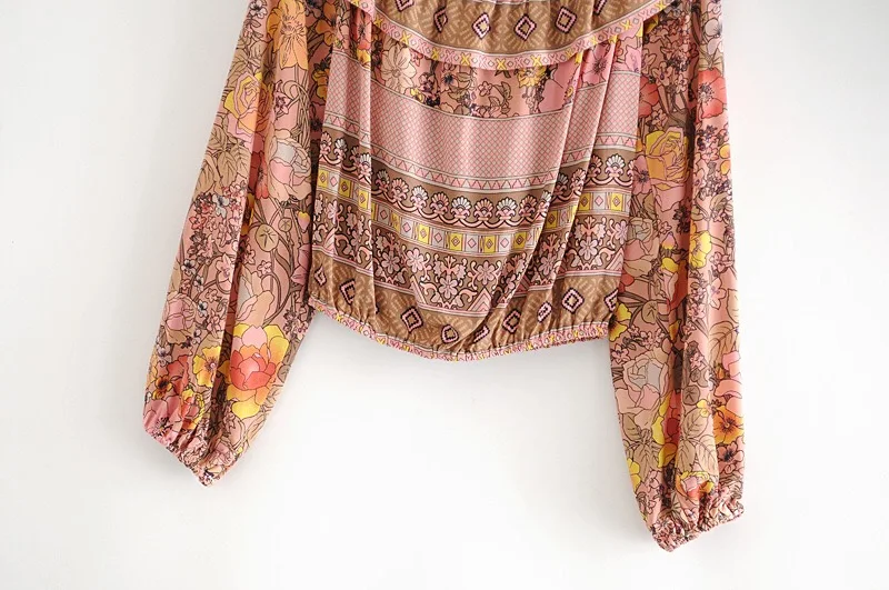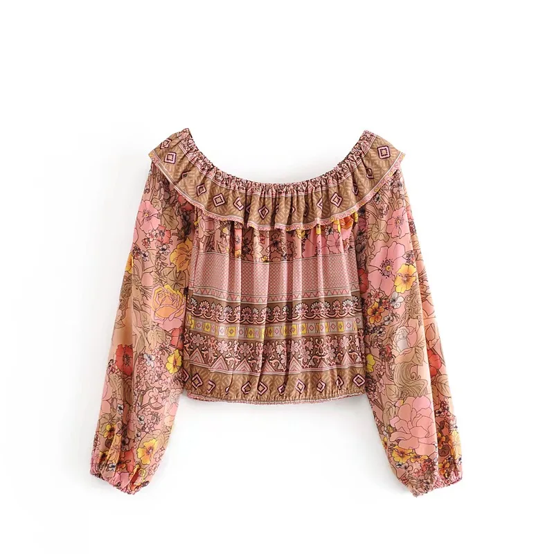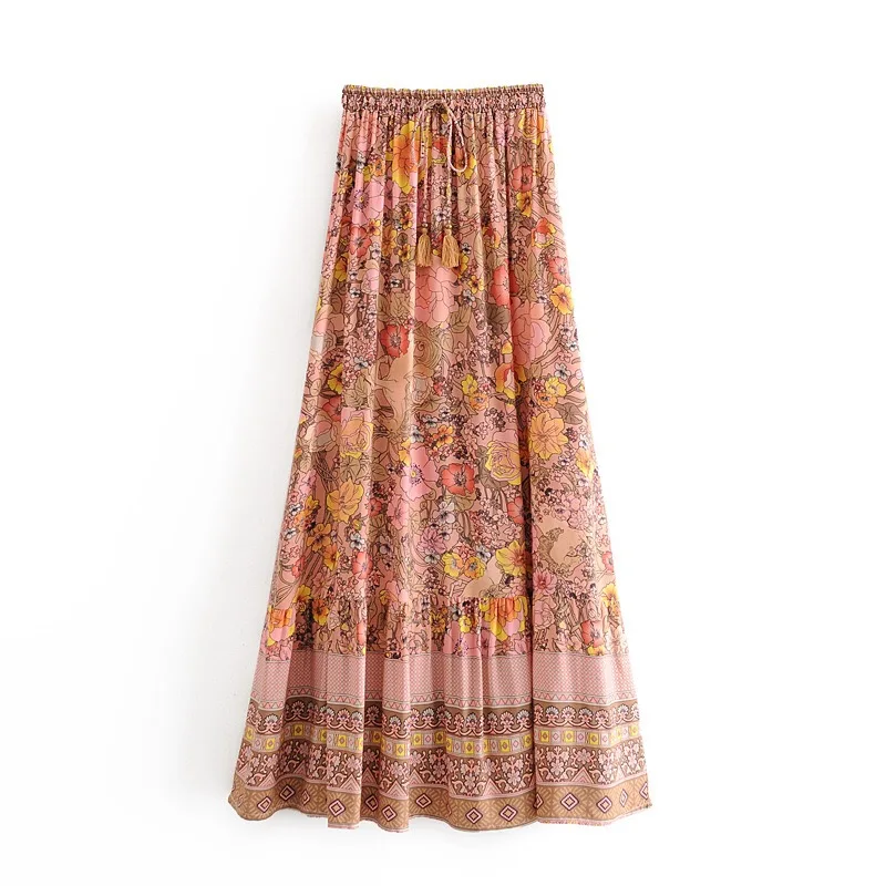 Женский праздничный комплект из 2 предметов, эластичный укороченный топ с цветочным принтом и вырезом лодочкой и оборками, оранжевая длинная юбка-макси с поясом на резинке, короткая рубашка в стиле бохо