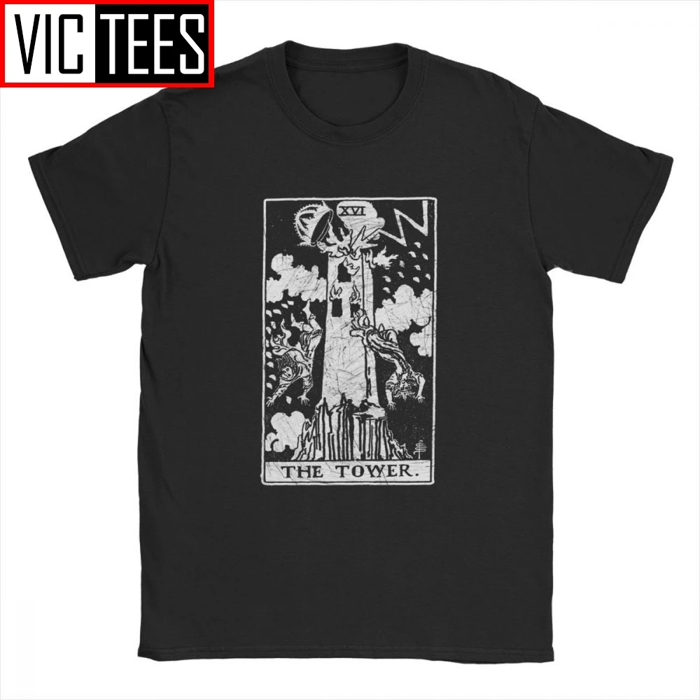Мужская футболка с изображением башни Таро кард мажор Аркана гадание оккультная винтажная хлопковая футболка оптовая продажа