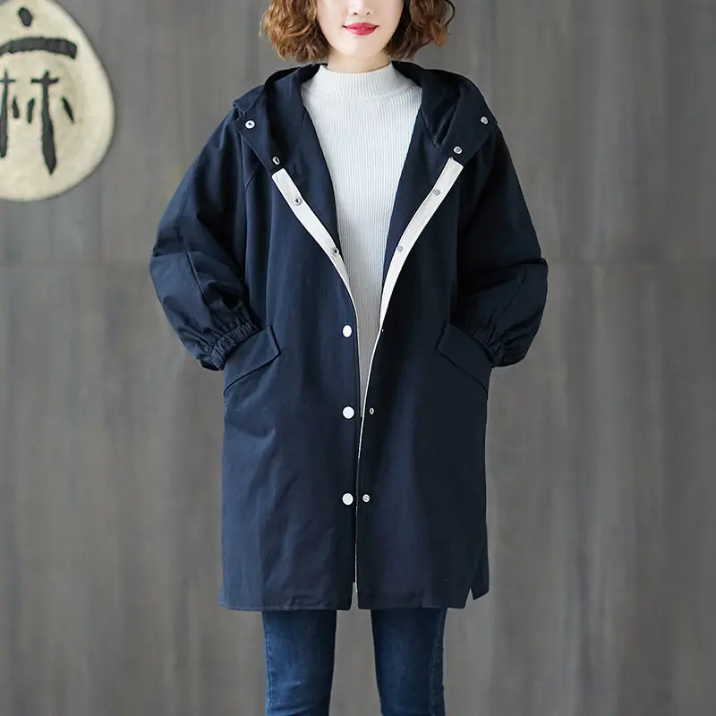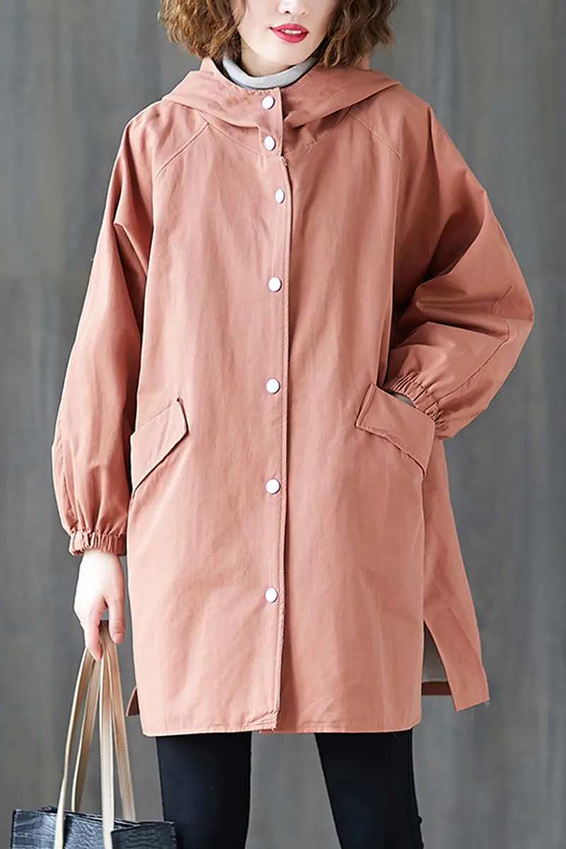 Женское однобортное пальто с капюшоном, свободная Длинная ветровка большого размера, повседневный Тренч с капюшоном, K245, весна 2020