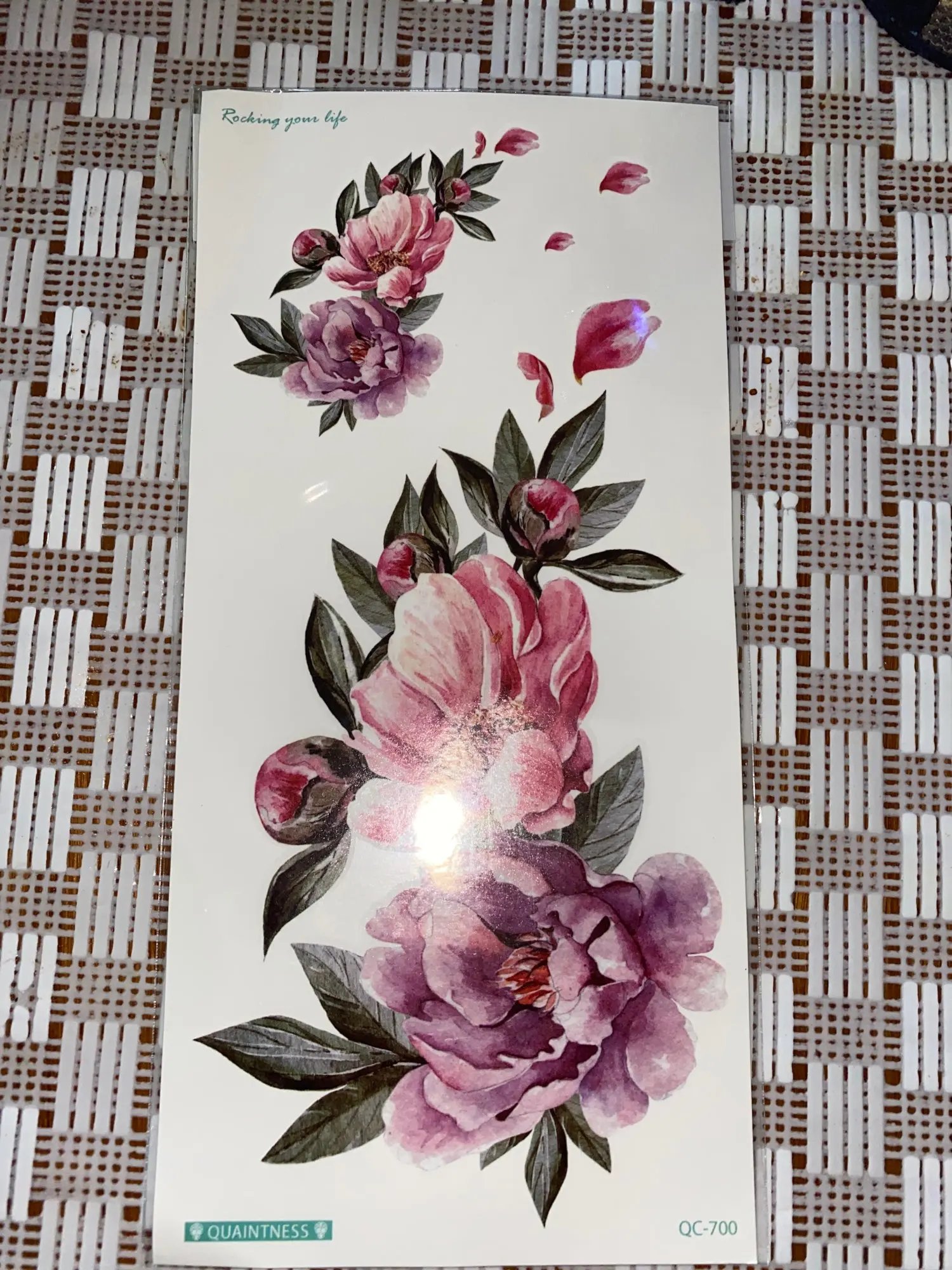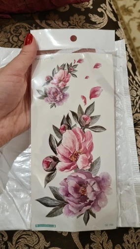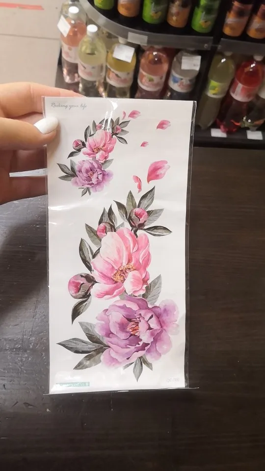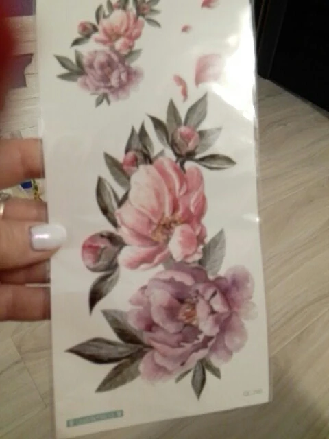 Татуировка красиво выглядит на коже, как настоящая. Но быстро начала отслаиваться, буквально через пару дней. Насчет доставки: товар был плохо упакован в пакет без пупырышек, из за чего бумага сильно помялась.