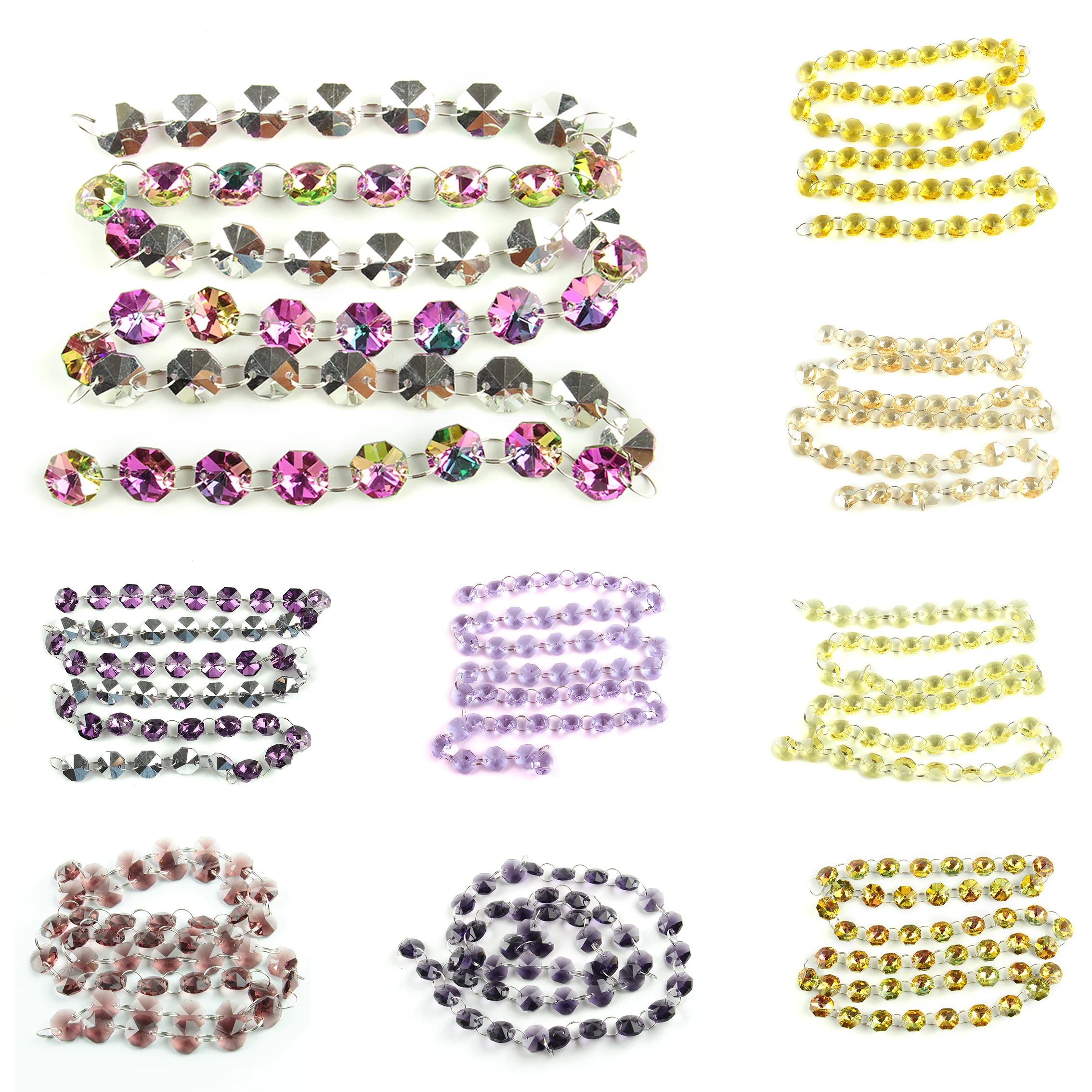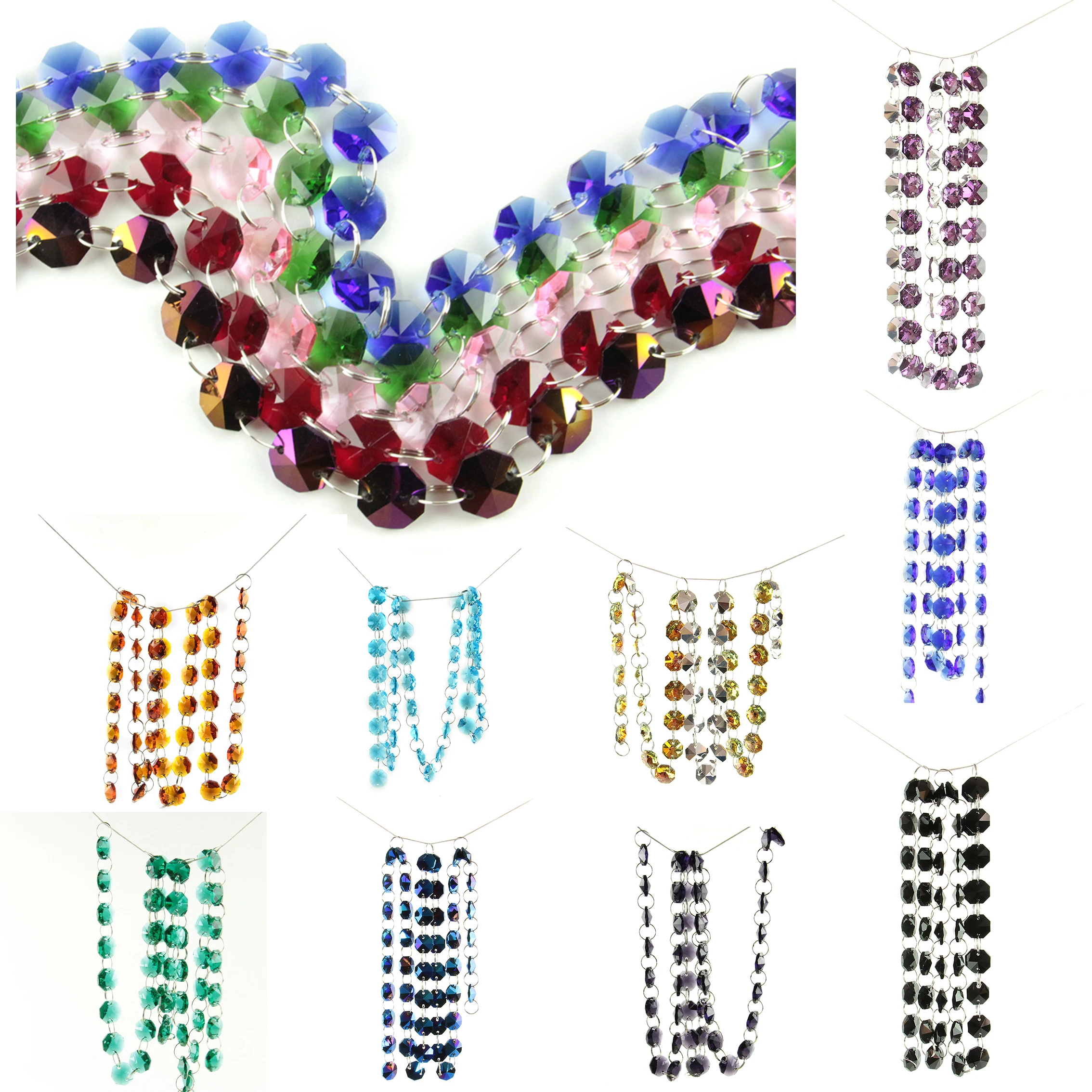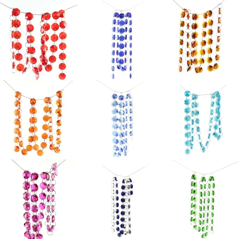 Ручной работы 5 м 1 м прозрачный красный розовый Цвета Хрустальная деталь люстры призмы Восьмиугольные бусины цепи дома деко в стиле Ловца снов рождественским