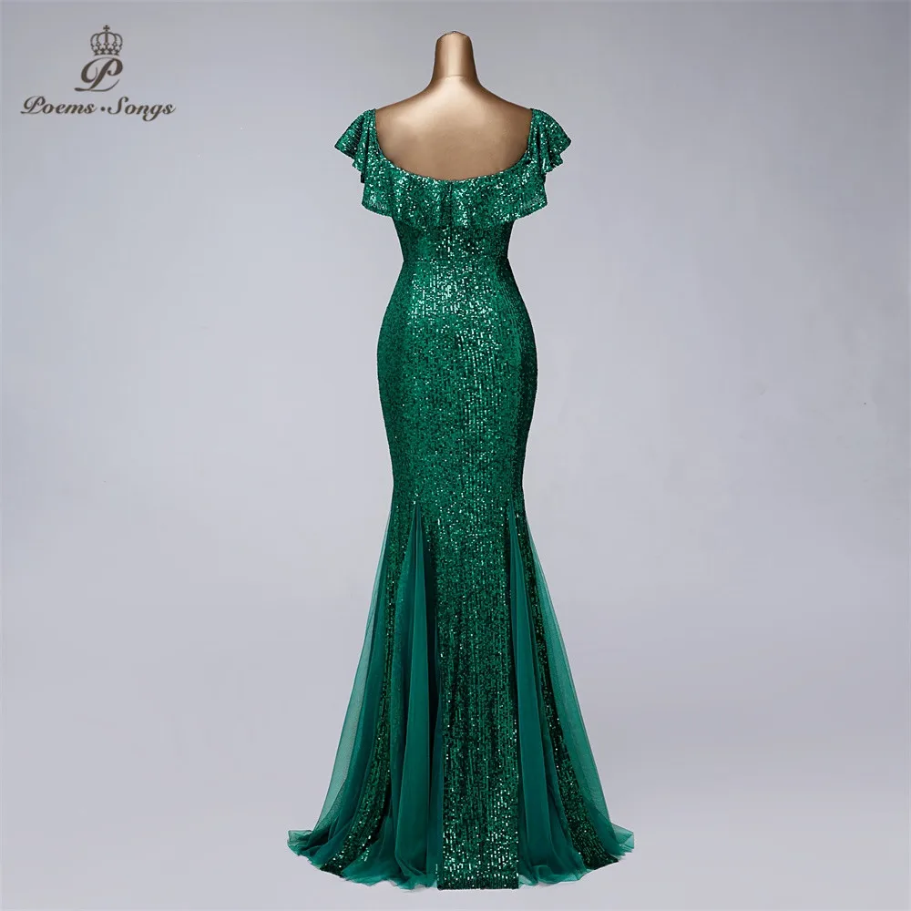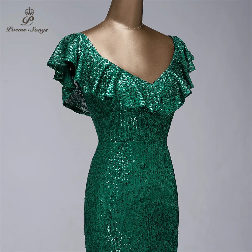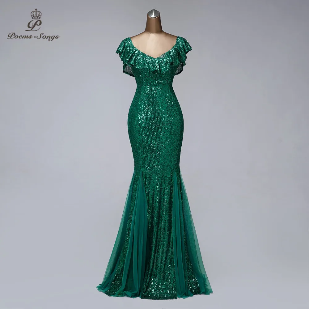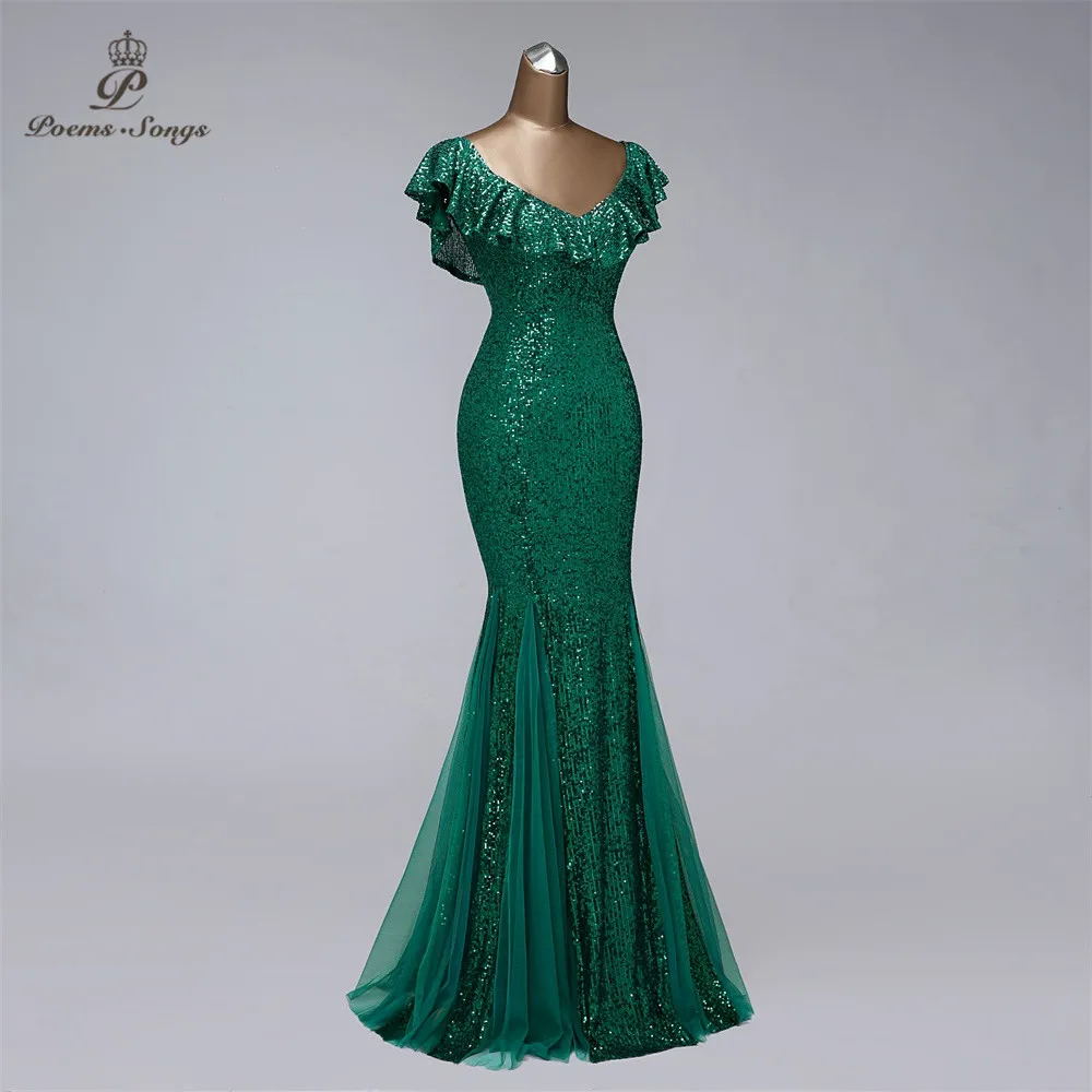 Женское вечернее платье с V-образным вырезом, элегантное зеленое платье с уникальным воротником, платье-Русалка для вечеринки
