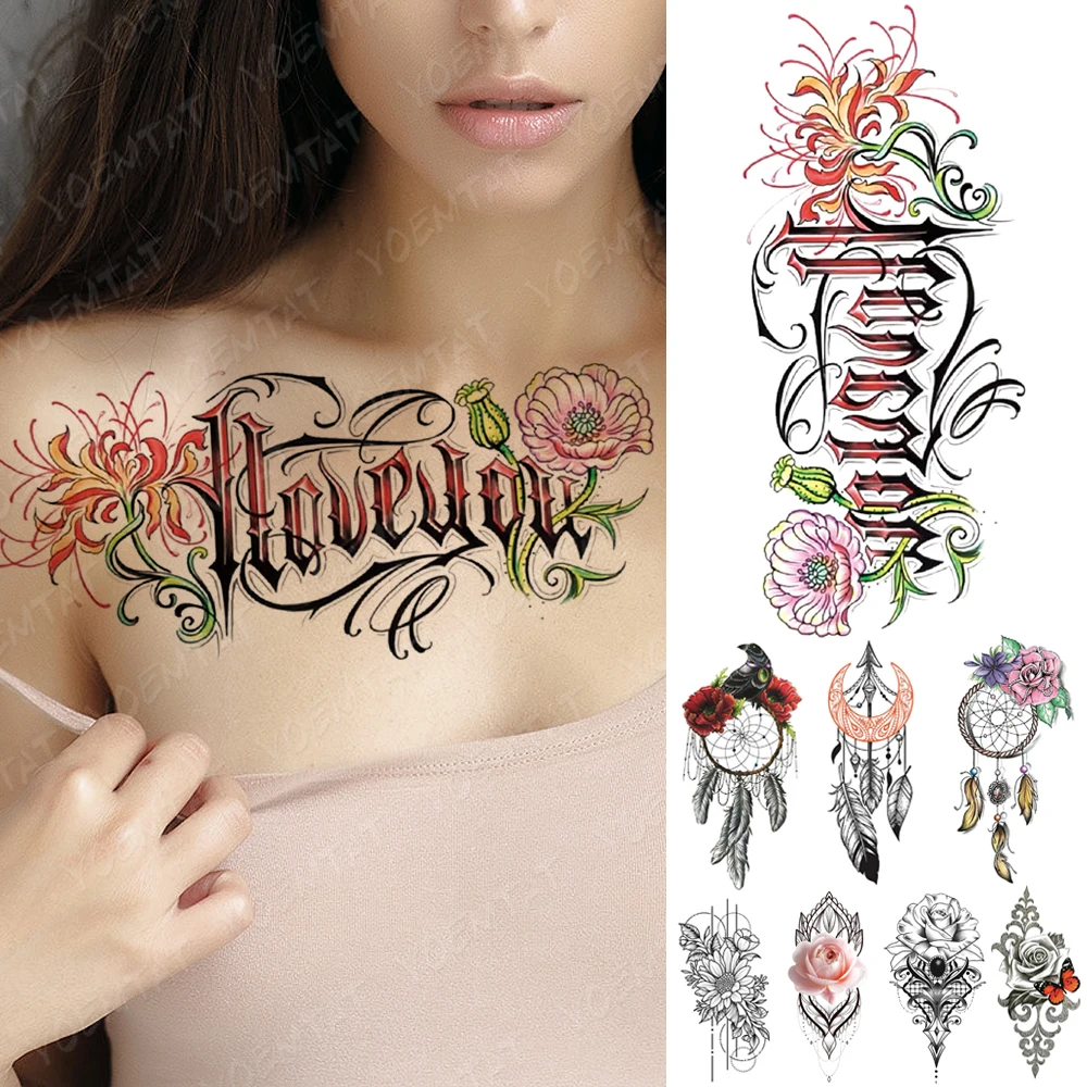 Водонепроницаемые Временные татуировки, наклейки Ловец снов, цветы, любовь, флэш-татуировки, Бабочка, лотос, тело, искусство, рука, ложный рукав, тату для женщин