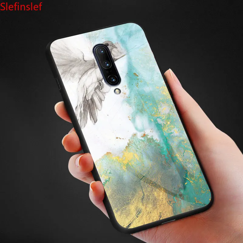 Чехол-накладка для Oneplus 7, 7T Pro, из закаленного стекла, с мрам...