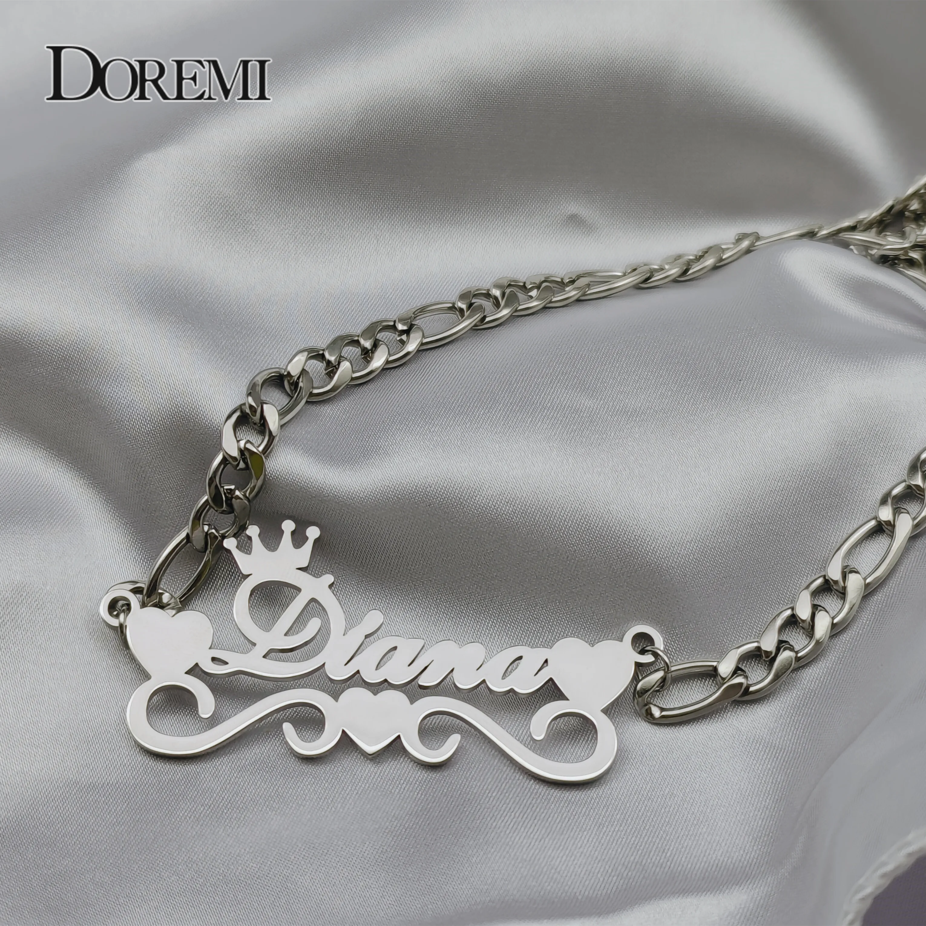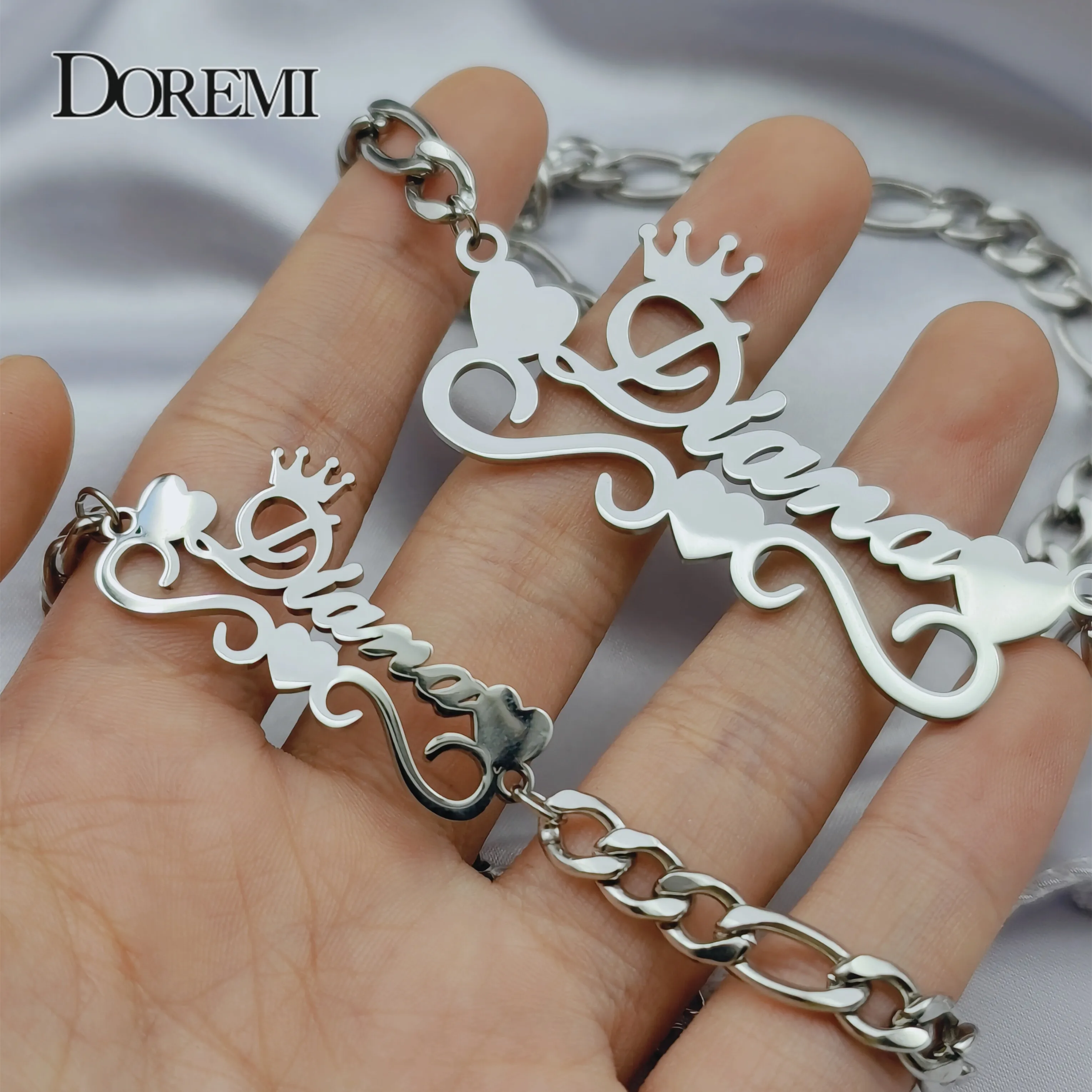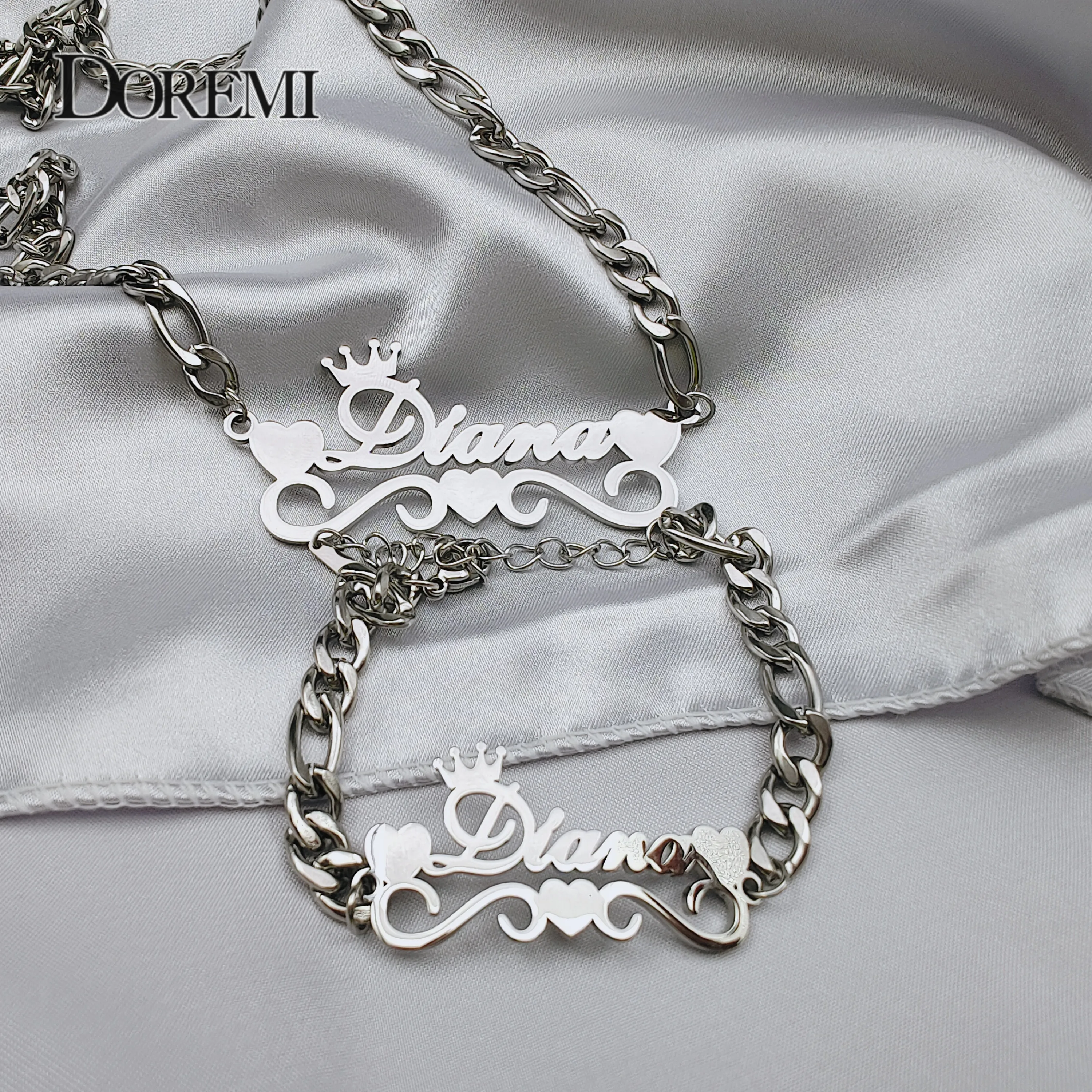 Ожерелье и браслет DOREMI из нержавеющей стали 316L с именем на заказ, ювелирные изделия, набор с именем на заказ с короной и сердцем, рождественский подарок