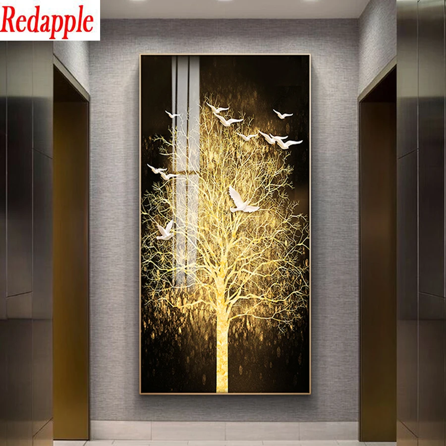 Алмазная вышивка, абстрактное искусство, полностью квадратное круглое сверло, алмазная живопись, золото, деньги, дерево, птицы, 5d, сделай сам, Алмазная мозаика для украшения