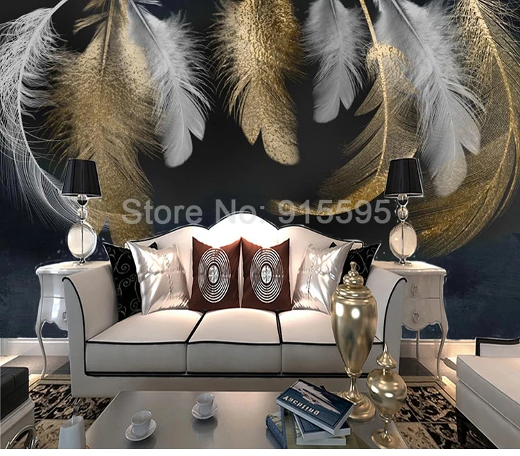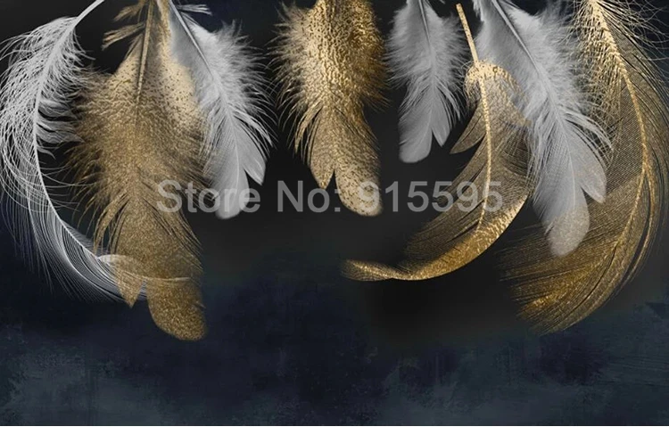 Настенные обои на заказ, Современный домашний декор, креативные 3D-обои с золотыми и белыми перьями, Фреска по фото, для гостиной, спальни