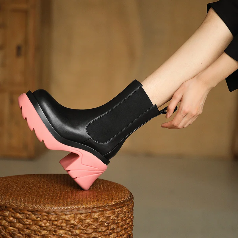Женские ботинки из искусственной кожи, Осенние эластичные ботинки до середины икры без застежек, на платформе, на толстой мягкой подошве, большие размеры