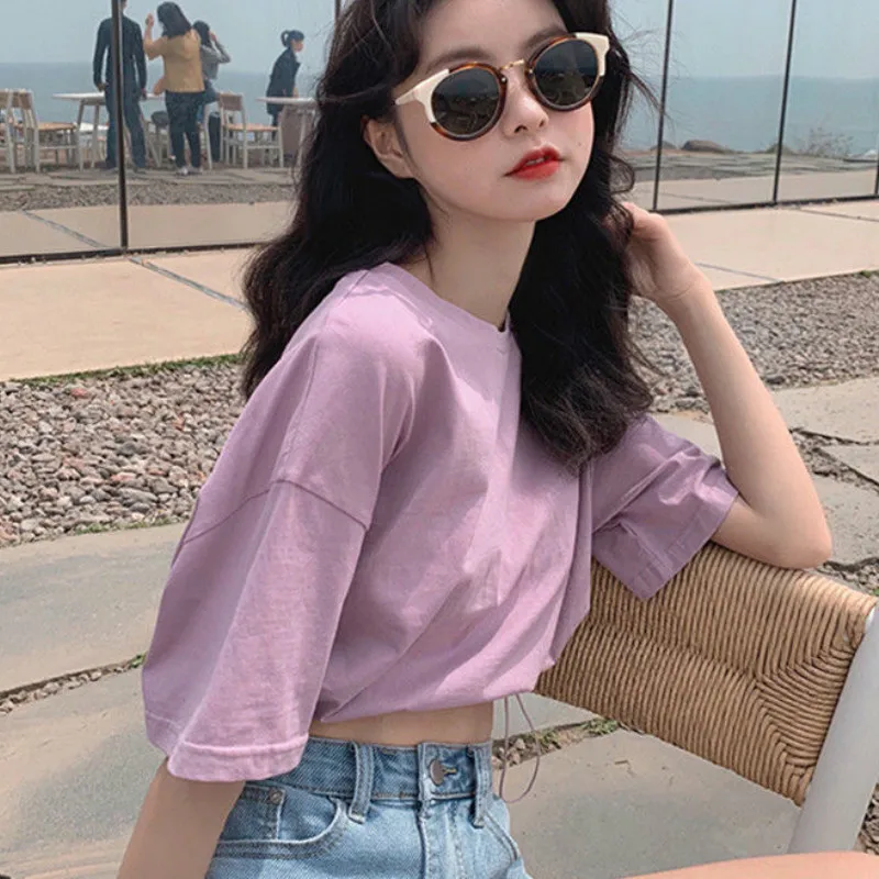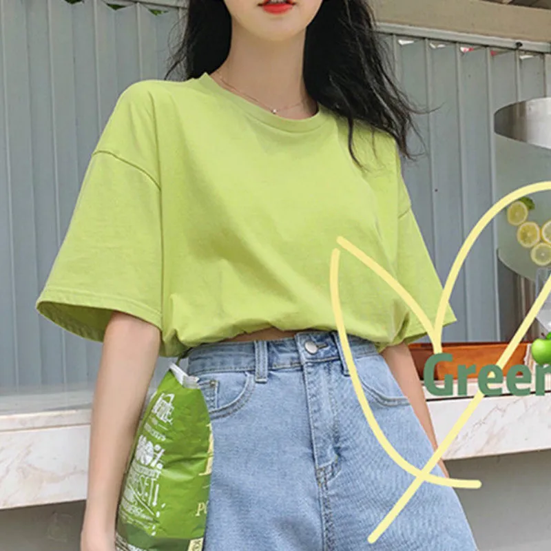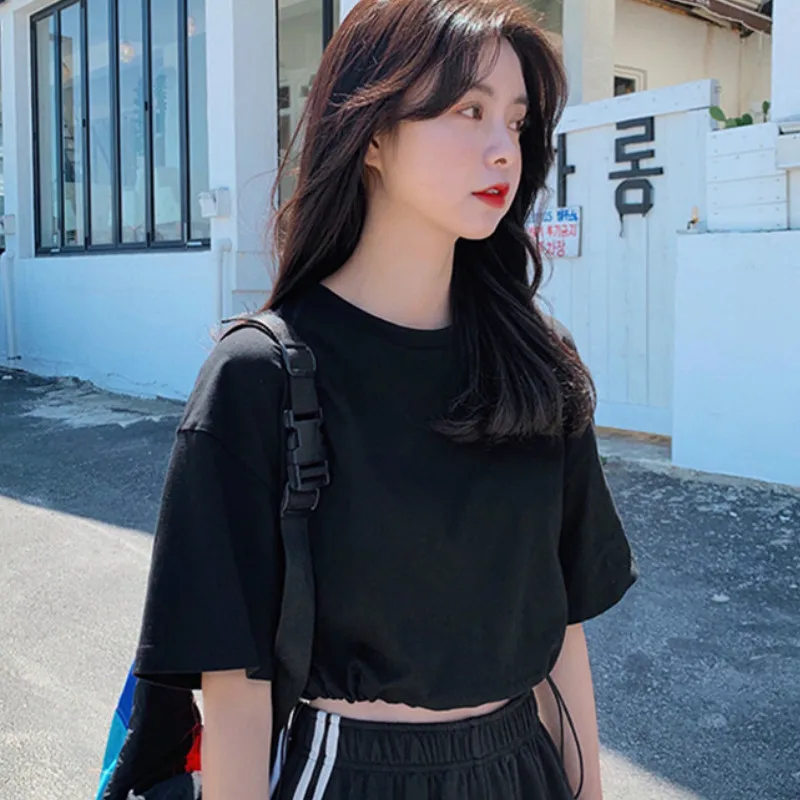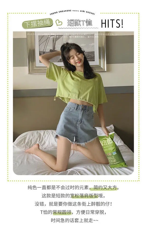 Футболки женские, летние, зеленые, фиолетовые, на шнурке, модные, для отдыха, укороченные, сексуальные, милые, для девушек, одежда Ulzzang, простые, шикарные