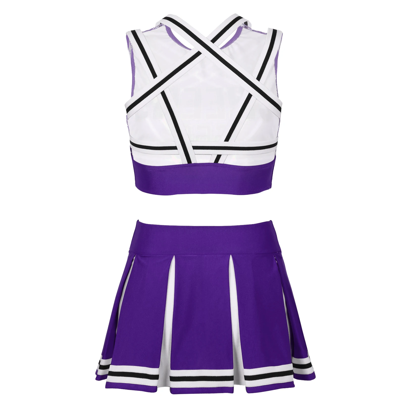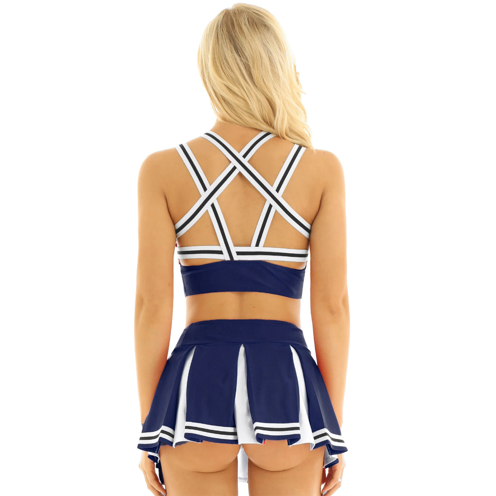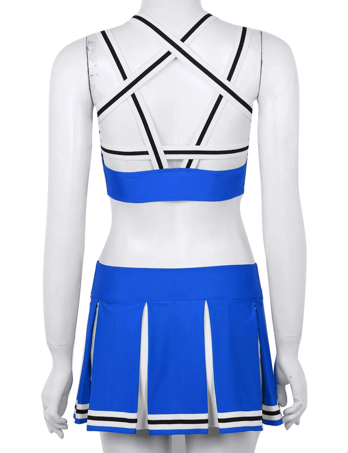 Женский костюм для косплея чарлидинга, комплект из кроп-топа с пентаграммой на спине и плиссированной мини-юбки, Очаровательная школьная униформа для чарлидинга