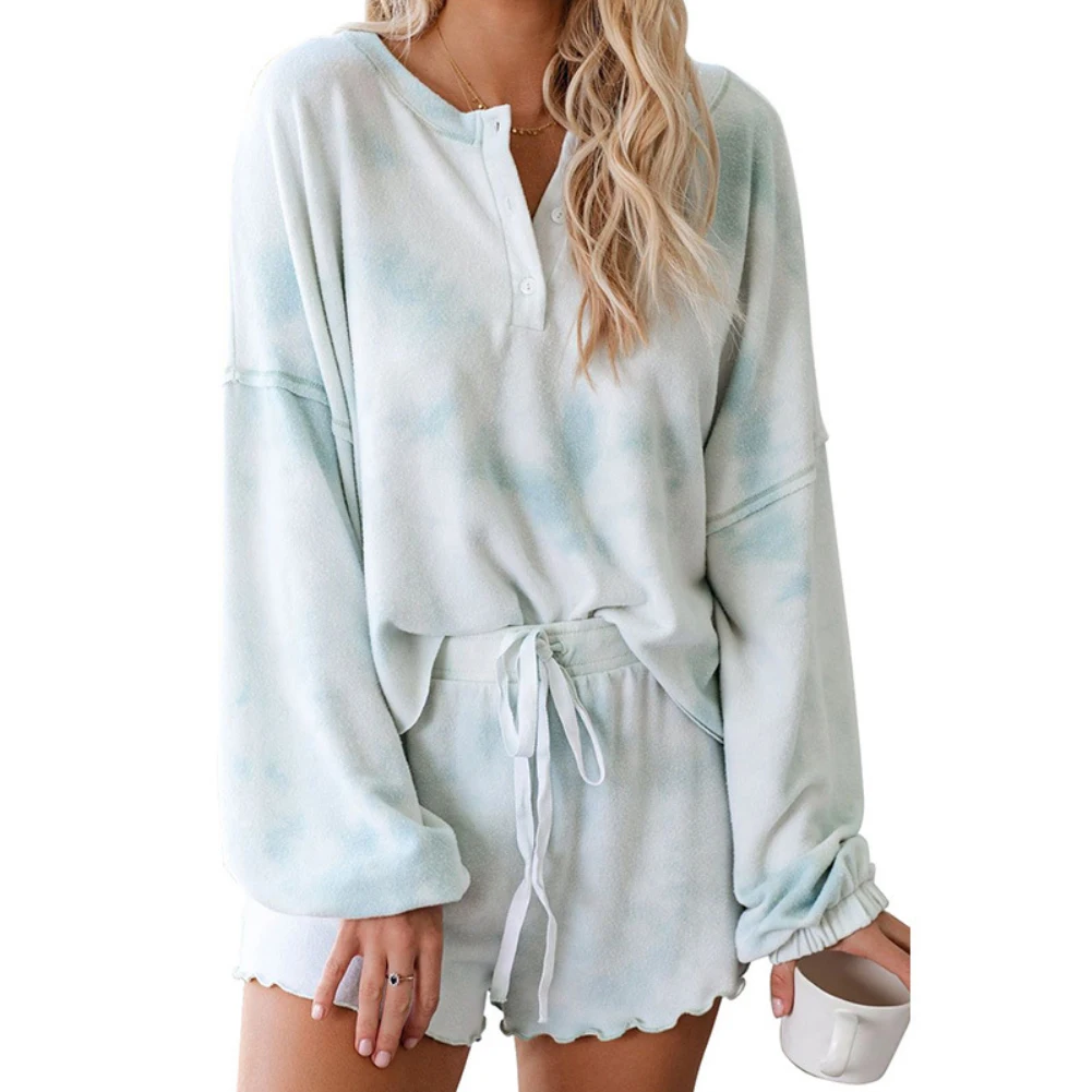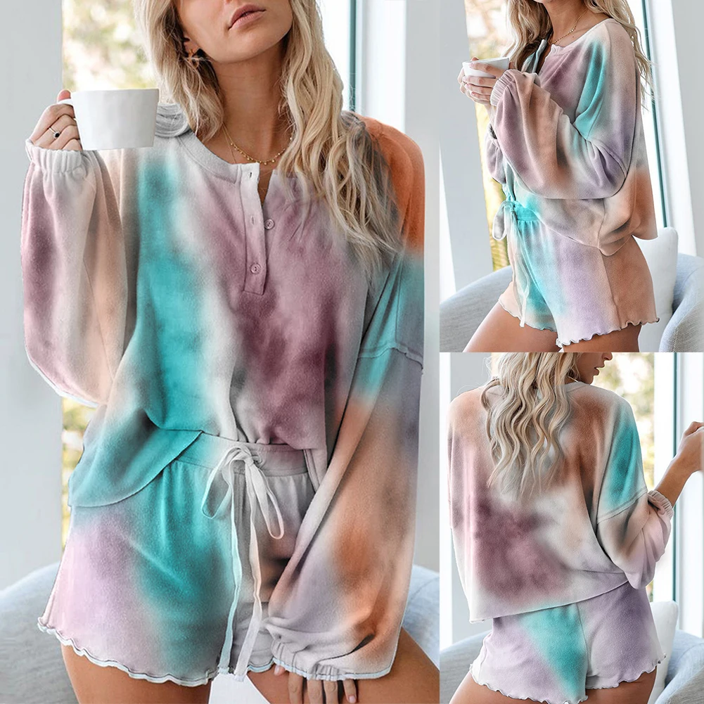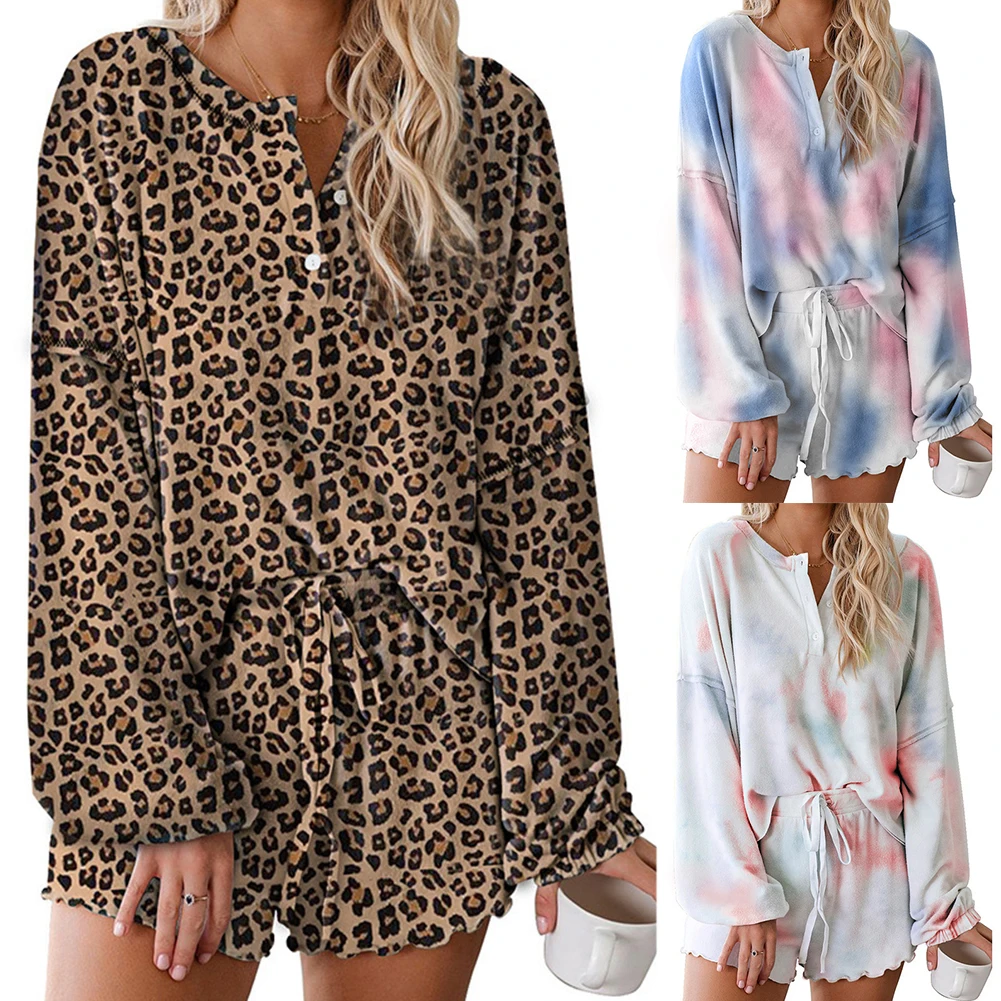 Женская блузка с длинным рукавом и шорты на шнуровке, домашняя одежда, комплект домашней одежды, одежда для сна, одежда для сна, домашняя одежда, 2020