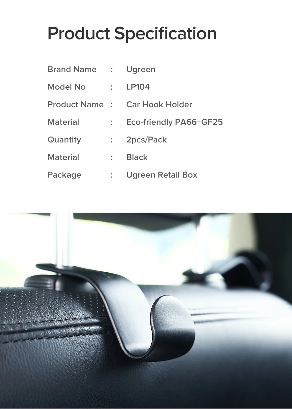 Автомобильный держатель для крючков Ugreen 2 шт., Регулируемая Вешалка на подголовник сиденья, крючки для продуктов, сумка, органайзер, автомобильные аксессуары для хранения