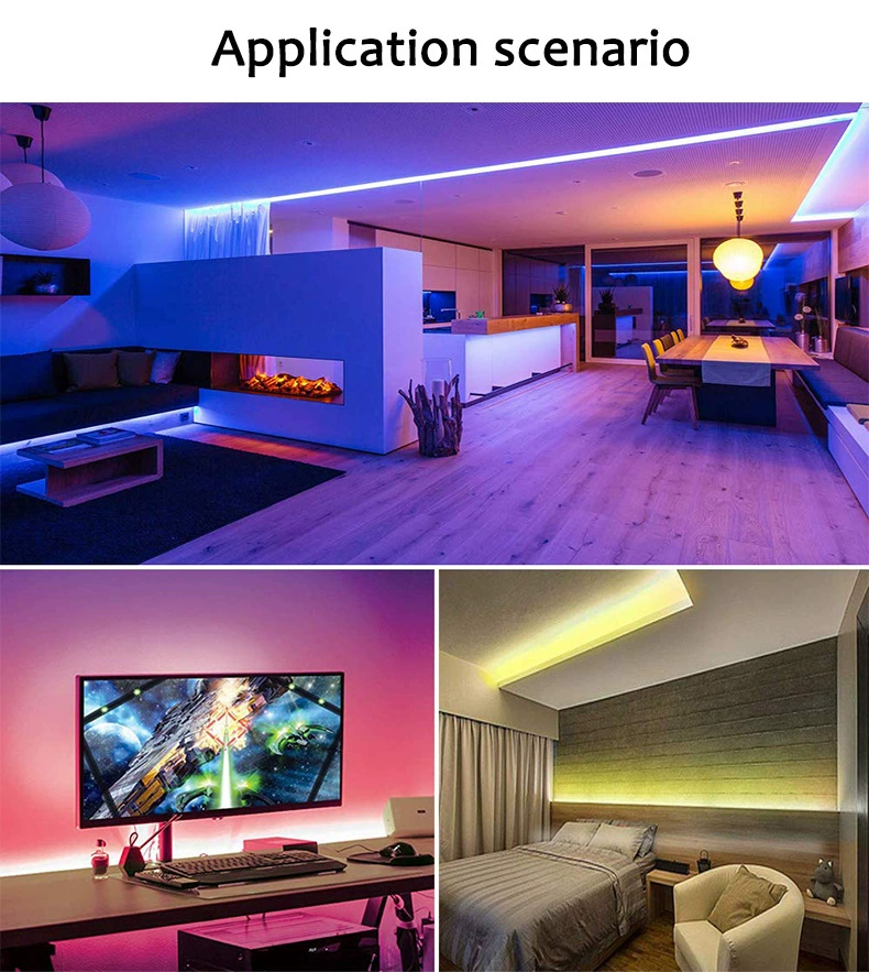 > Применение:1. Широко используется для украшения дома, отелей, клубов, торговых центров2. Архитектурное декоративное освещение, изысканное атмосферное освещение3. Широко применяется при заднем освещении, скрытом освещении, освещении буквы канала4. Аварийное и безопасное освещение, рекламный знак освещения5. Декоративные светильники для праздников, мероприятий, выставки6. Подходит для украшения автомобиля и велосипеда, пограничного или контурного освещения