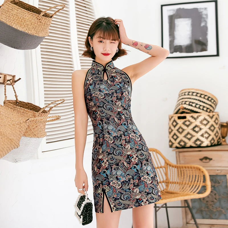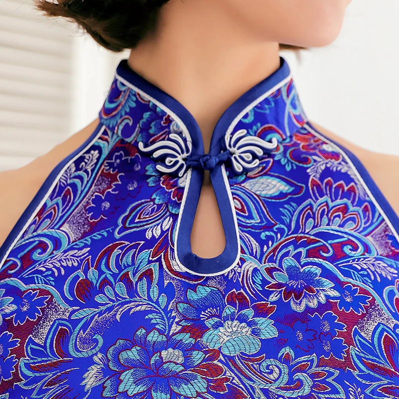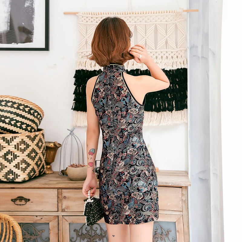 Женское винтажное платье-Ципао с открытой спиной и воротником-стойкой