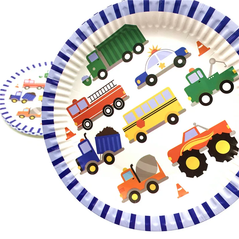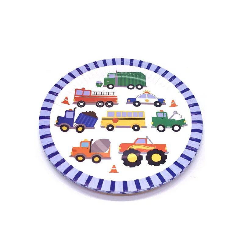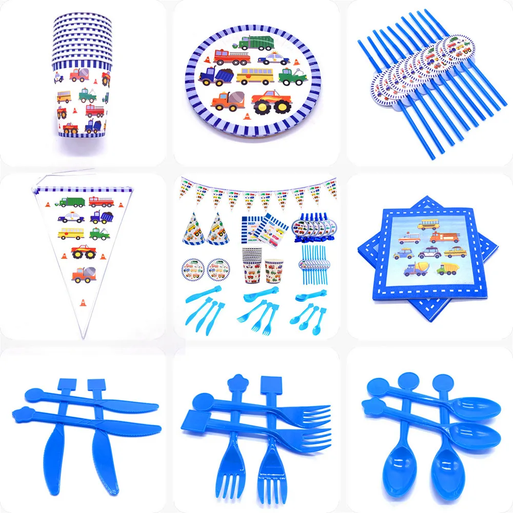 Набор одноразовой посуды в строительном инженерном автомобиле, бумажные тарелки, чашка, баннер, скатерть для детей, тематическая вечеринка на день рождения