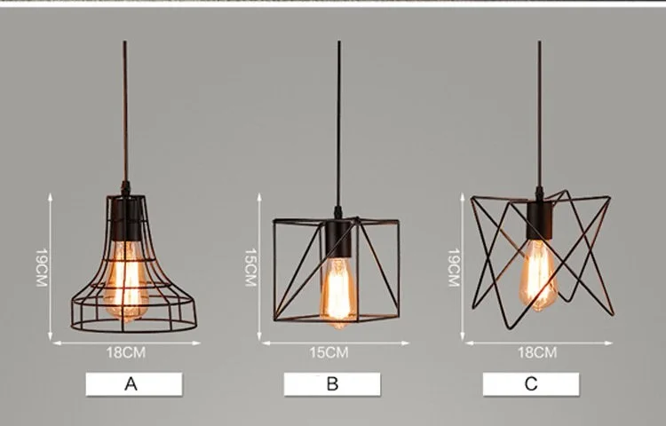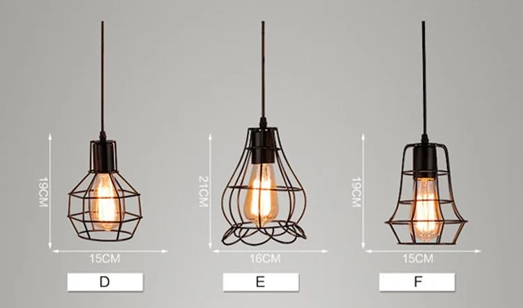 Спецификация:Название: железный подвесной светильникСтиль: винтажныйЦвет: черныйМатериал: железоДлина провода: 1200 ммРазмер:A:180*190 ммB:150*150 ммC:180*190 ммD:150*190 ммE:160*210 ммF:150*190 ммG:190*150 ммВ: 140*200 ммI:190*230 ммВиды отделки: окрашенныеДержатель лампы: E27Лампа включает: нетПрименение: бары, кафе, ресторан, гостиная, спальня, отель, магазин, коридоры и т. Д. Посылка:1 * железный подвесной светильник1 * фитинги1*40 Вт E27 Эдисон Ретро лампа