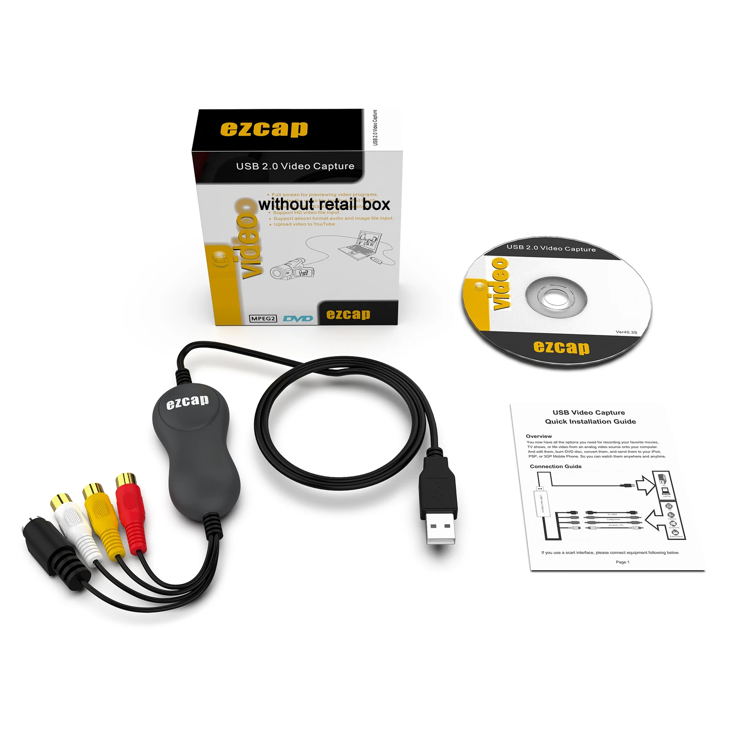 EZCAP 159 USB 2,0 Захват карты видеозахвата для VHS плеера видеокамеры игровой приставки к цифровому файлу для Windows 1087 и MAC OS 64 бит