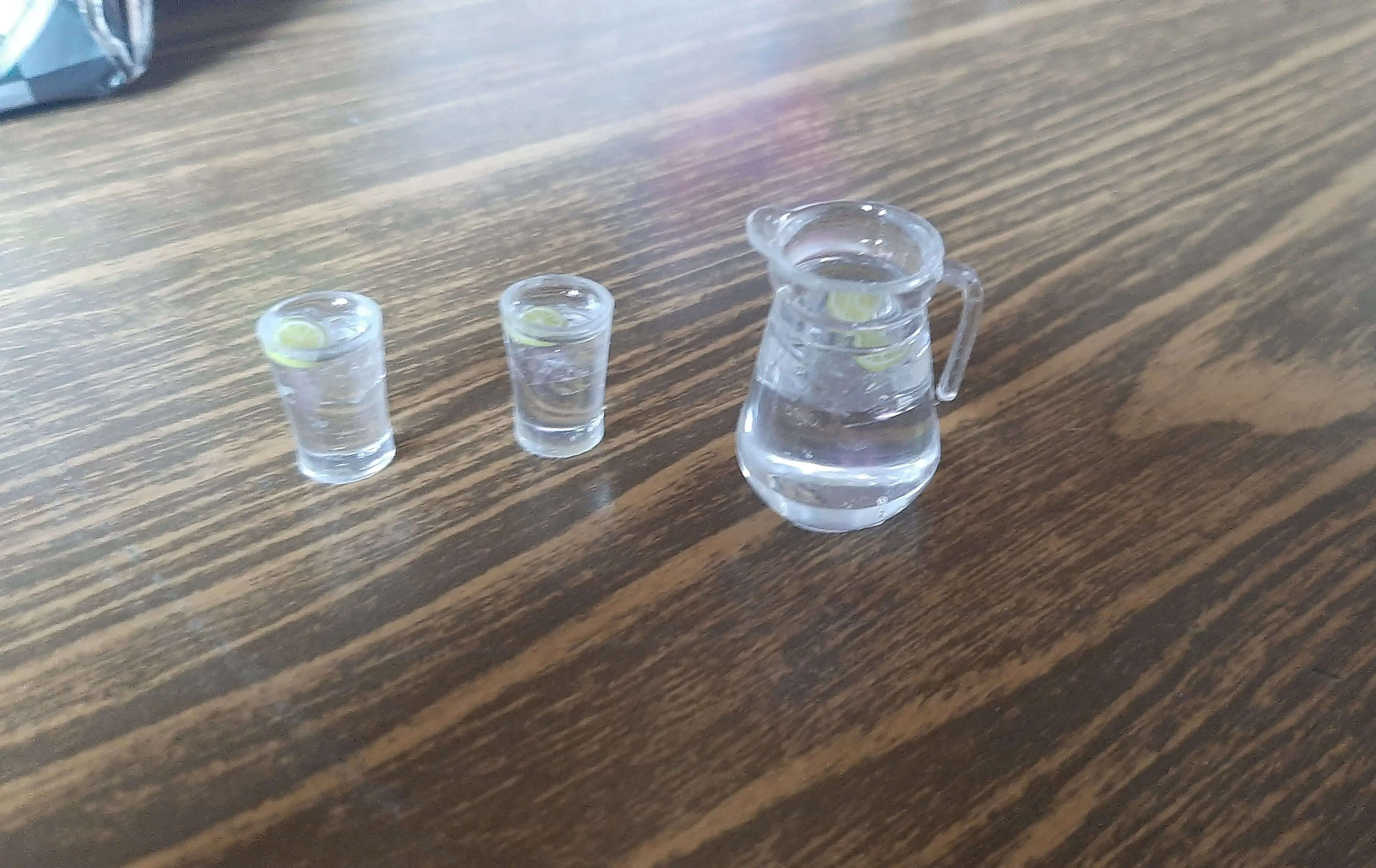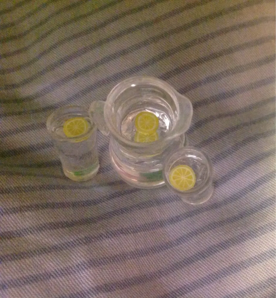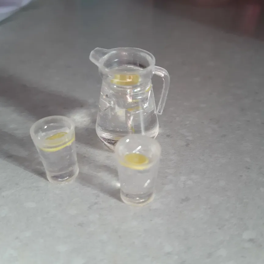 Абсолютно идеальный миниатюрный кувшин для воды и очки для воды. Выглядит точно так же, как на моей кухне. Отличный продавец! Тщательно упакованы и быстро отправлены!