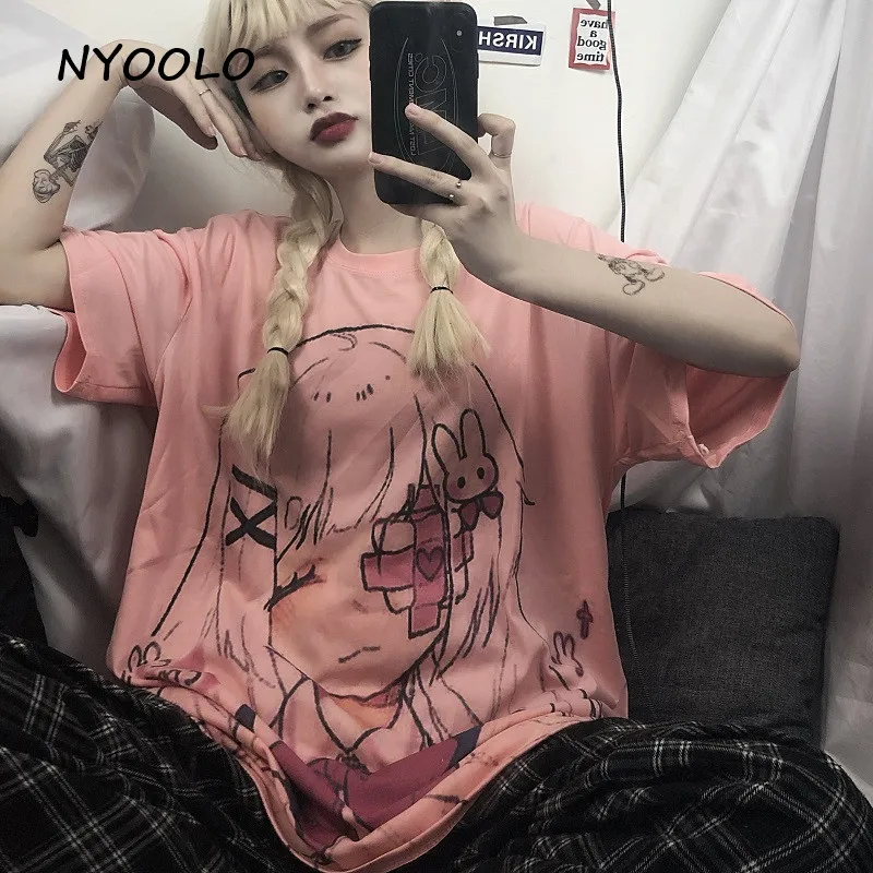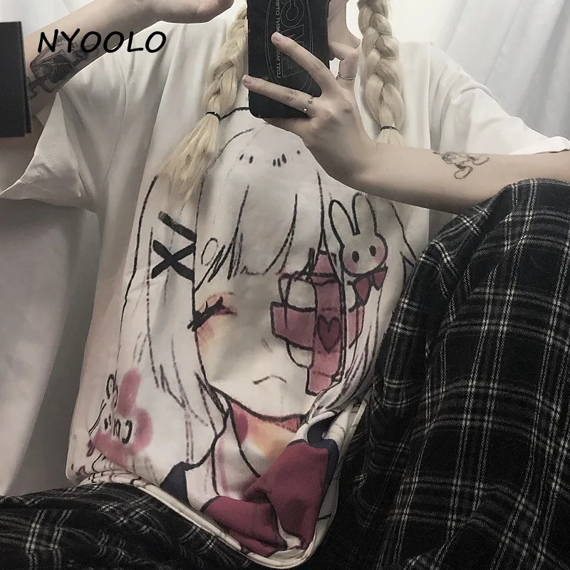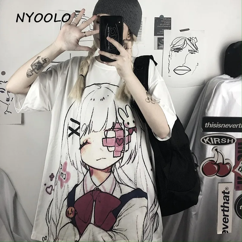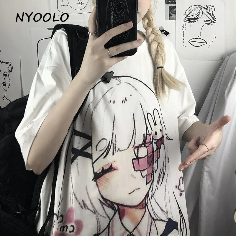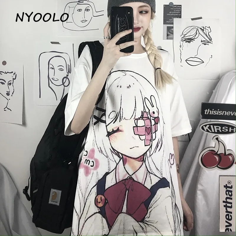 Женская Винтажная футболка с коротким рукавом NYOOLO Harajuku, белая свободная футболка с круглым вырезом и принтом для похорон