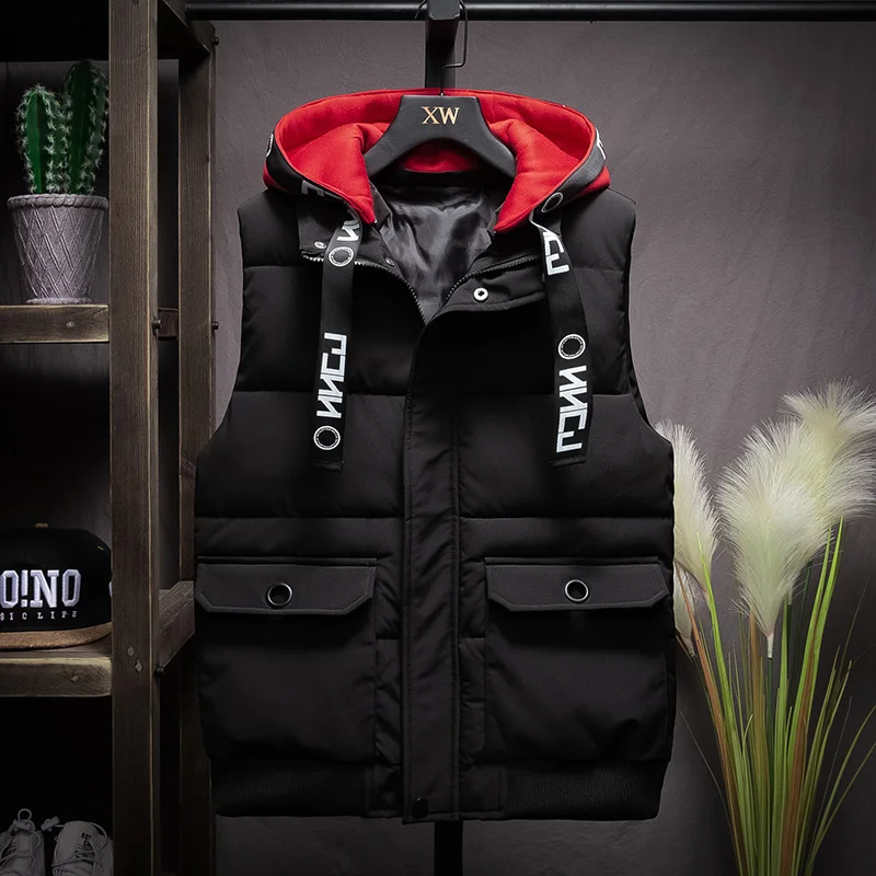 Жилет мужской демисезонный, со съемной шапкой, большие размеры, повседневный жилет без рукавов
