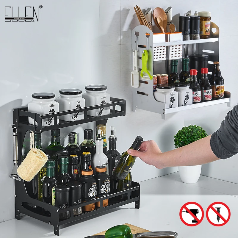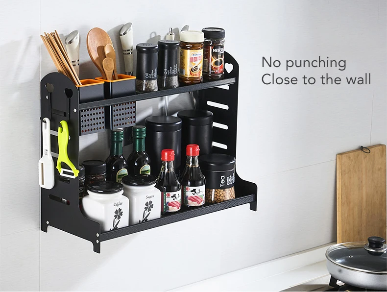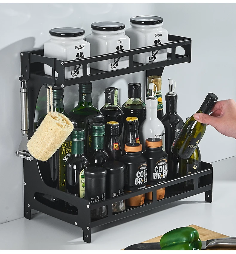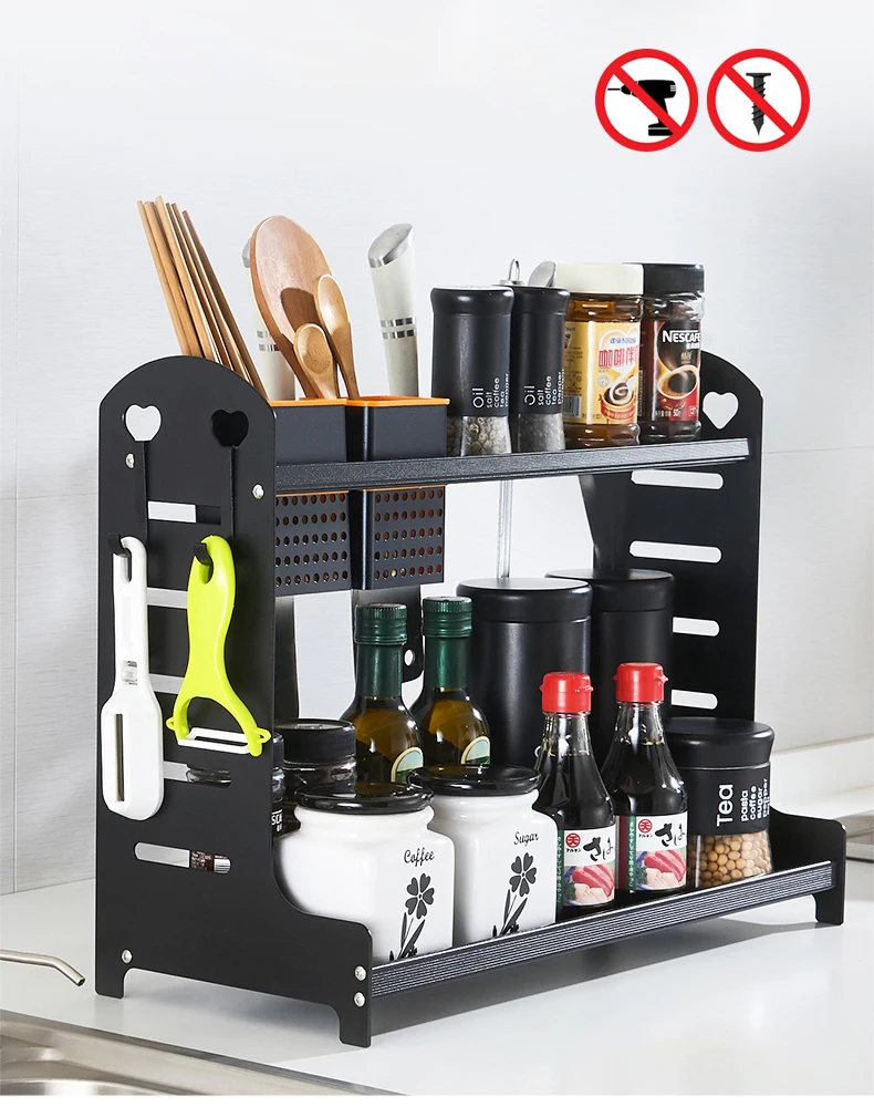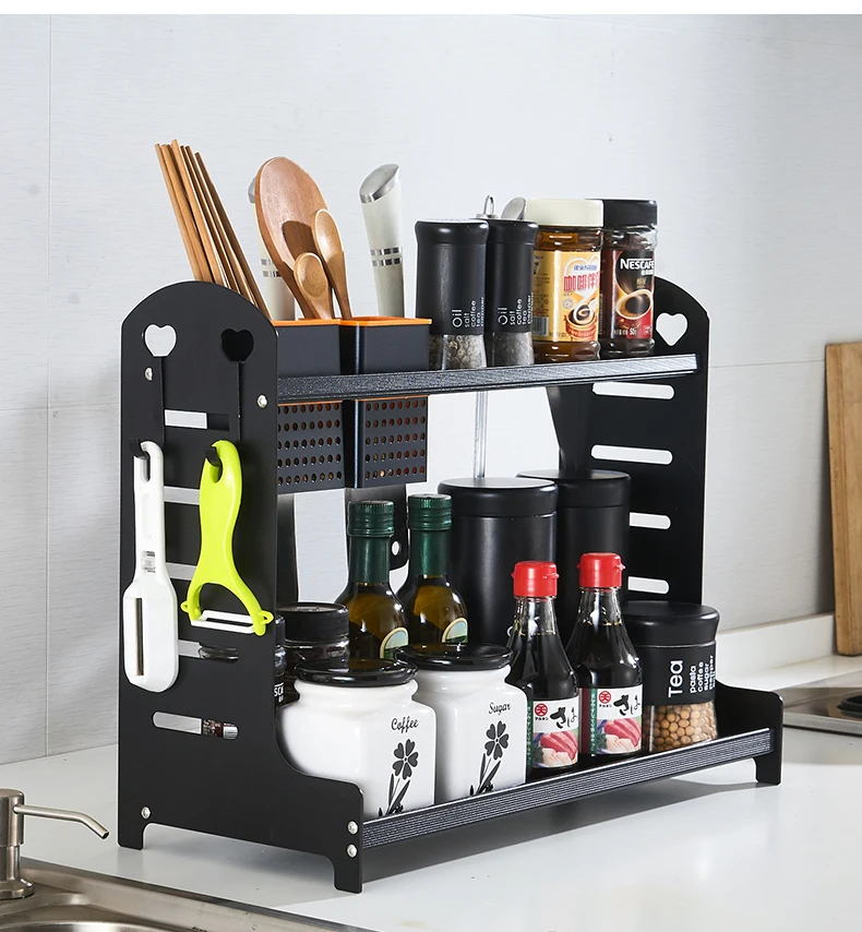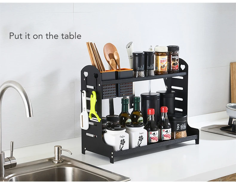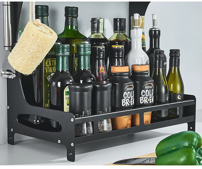 Эллен, кухонный органайзер для хранения приправ, Рабочая поверхность, черная полка, EL698