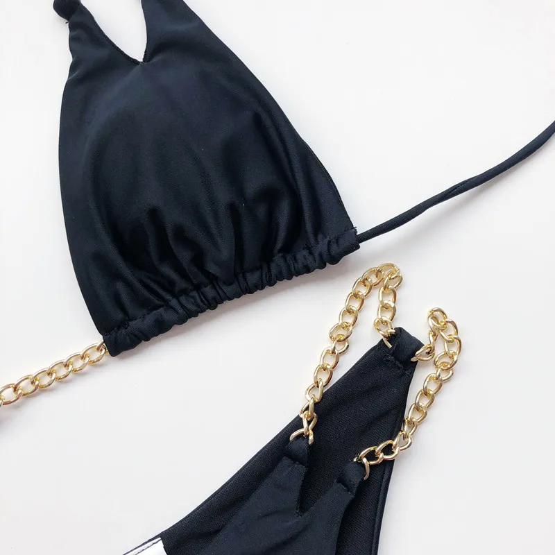 Peachtan, комплект бикини с лямкой на шее, женская модель 2021, женский черный купальник, костюм для плавания, новинка