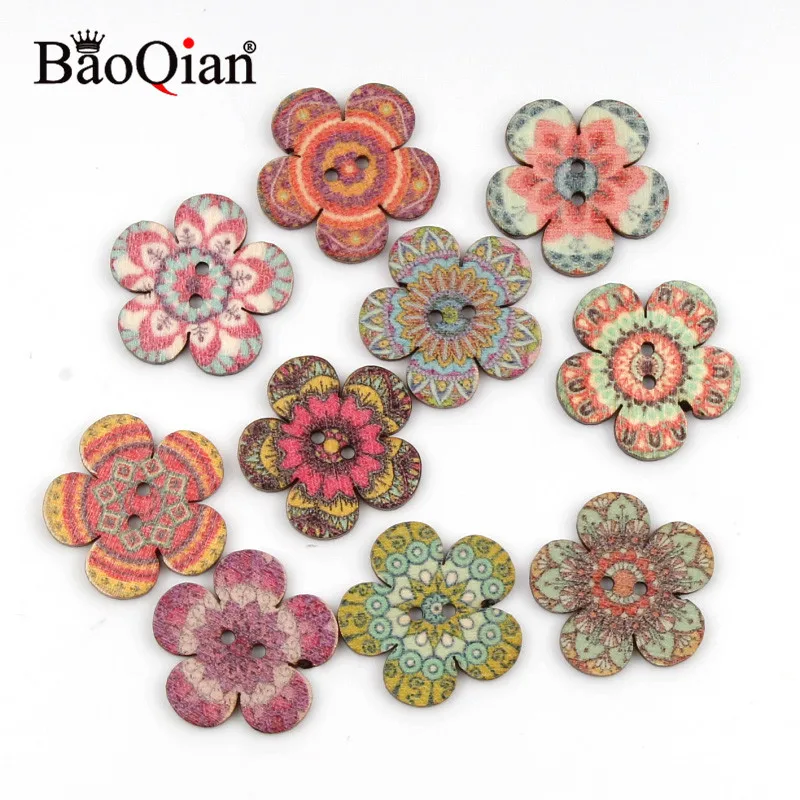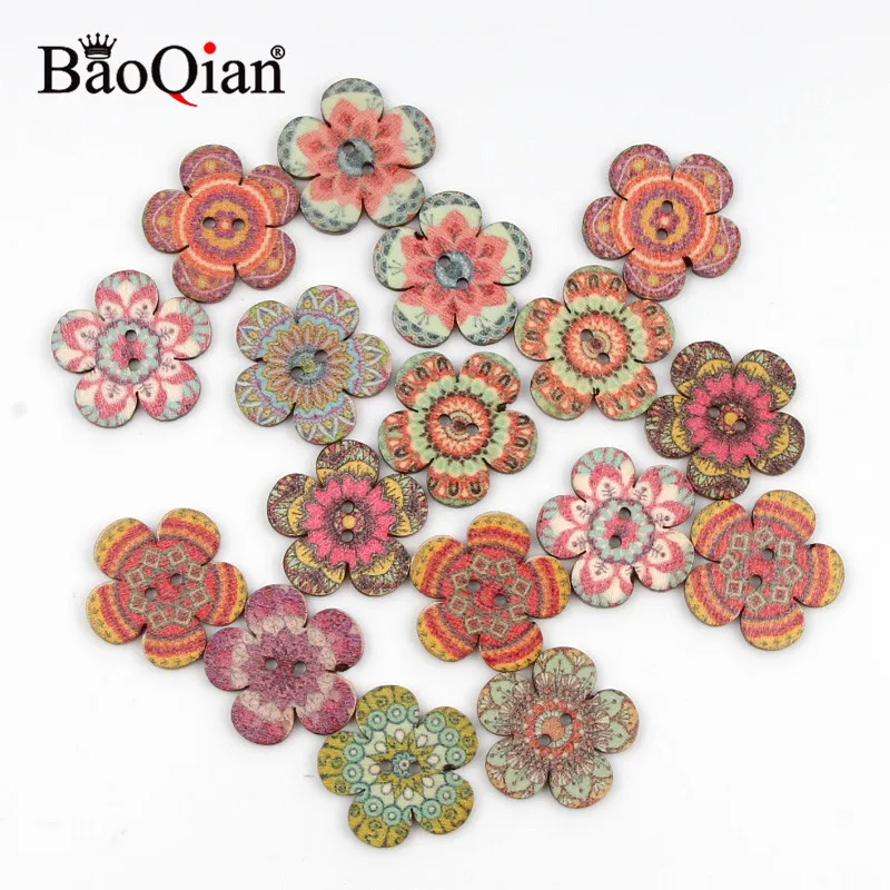 Пуговицы для шитья, в стиле ретро, 2025 мм, 50 шт., цветочные деревянные кнопки