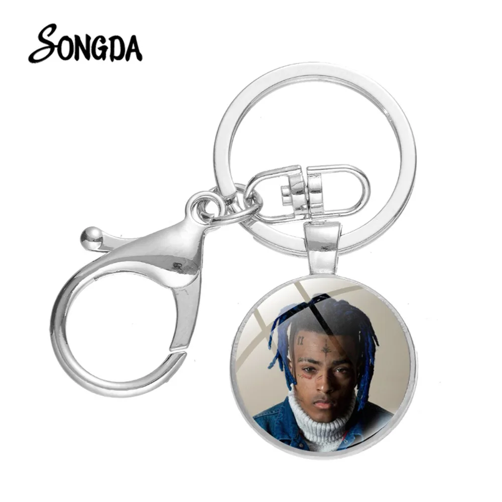 Хип-хоп рэпер певец брелок для женщин мужчин круглый стеклянный кабошон подвесные брелоки подвесной держатель с застежкой-лобстером веера сувенир
