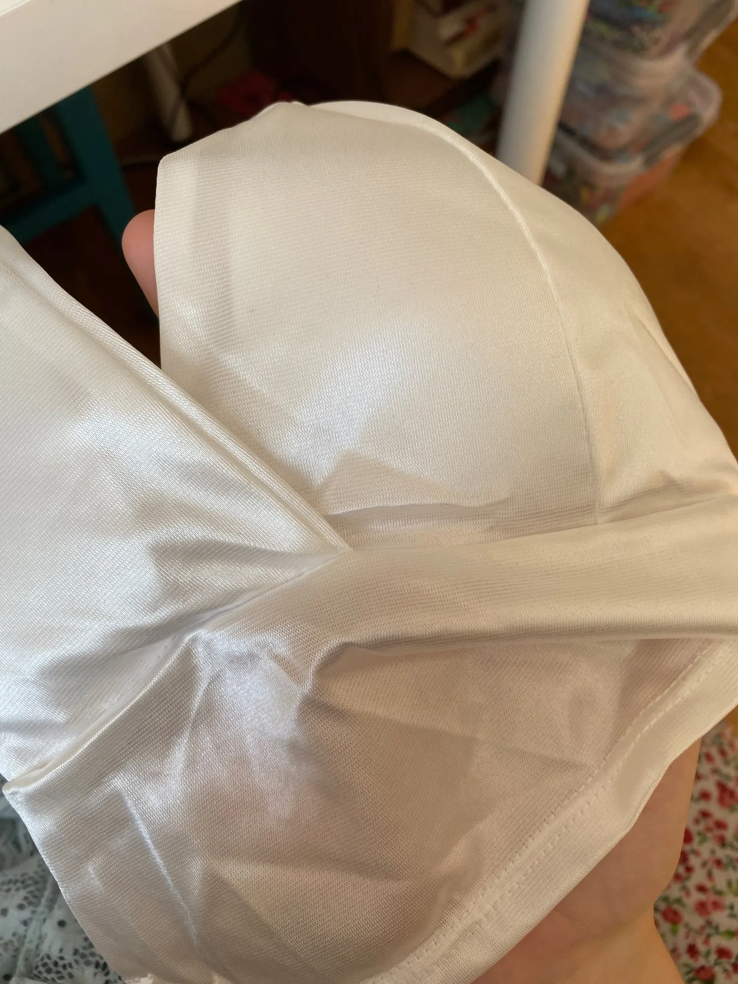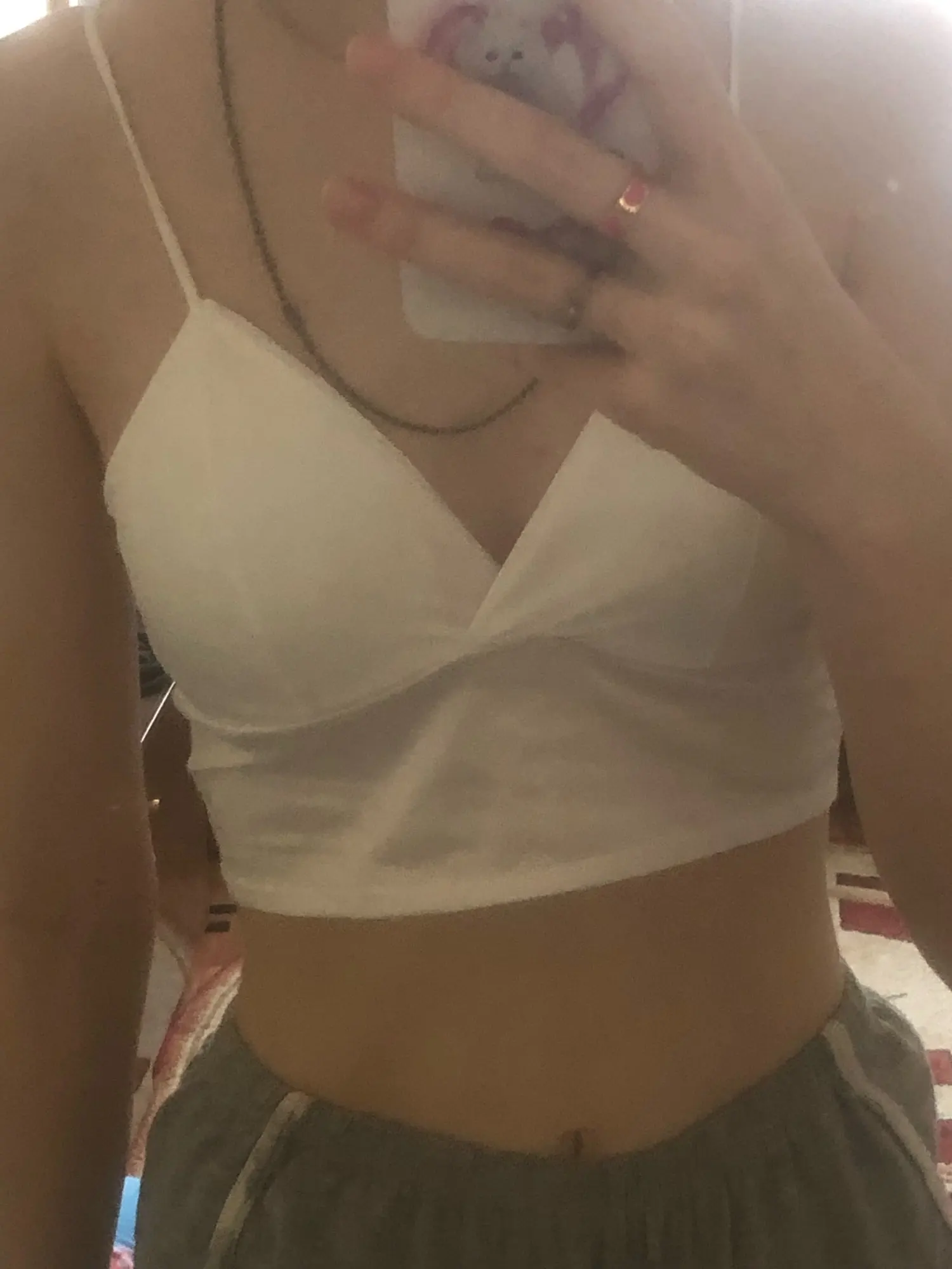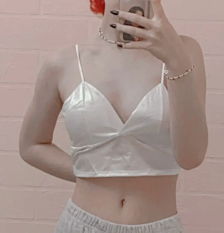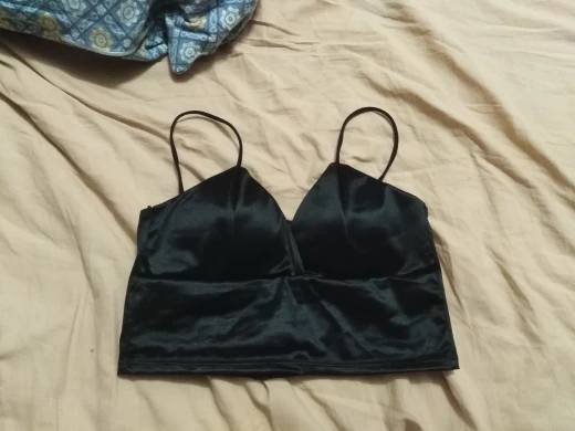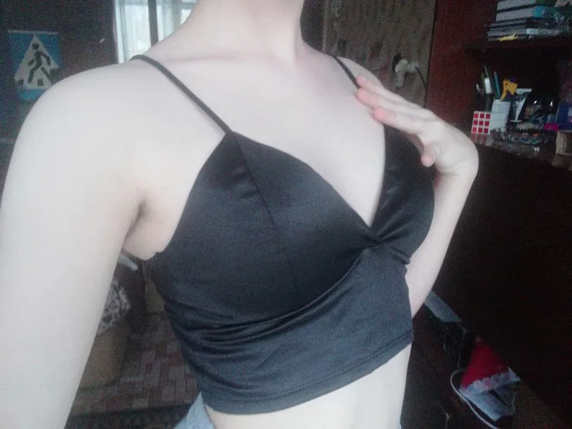 Топ мягкий, но материал тонкий. На месте застежки торчат нитки, но не критично. Еще хочется отметить, что носить удобно, благодаря тянущейся ткани. Учтите, что это синтетика и при долой носки это чувствуется. В остальном товаром довольна.