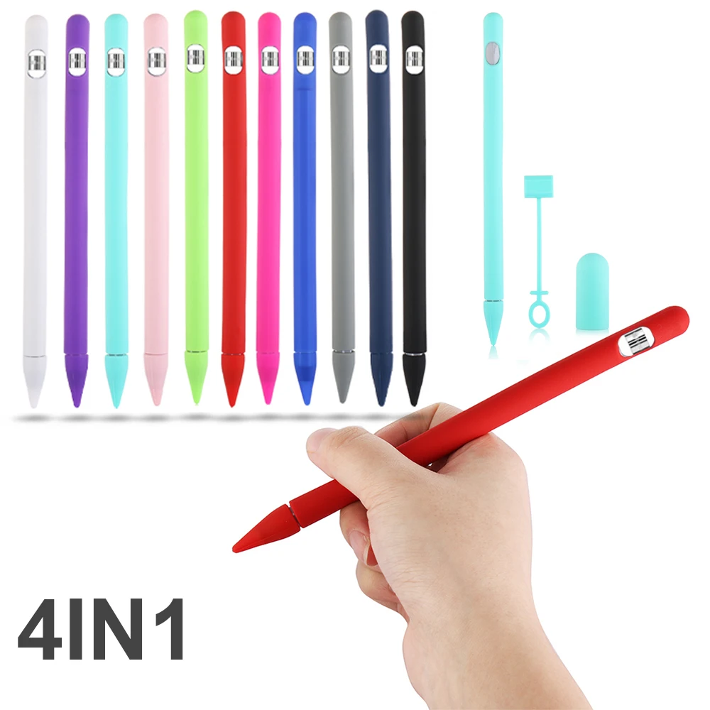 Цветной Мягкий силиконовый чехол 4-в-1 для Apple Pencil 1-го поколе...