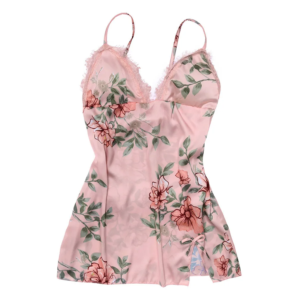 Женская пижама с цветочным принтом, ночная рубашка, женское белье с цветочным рисунком, соблазнительное нижнее белье, ночная рубашка