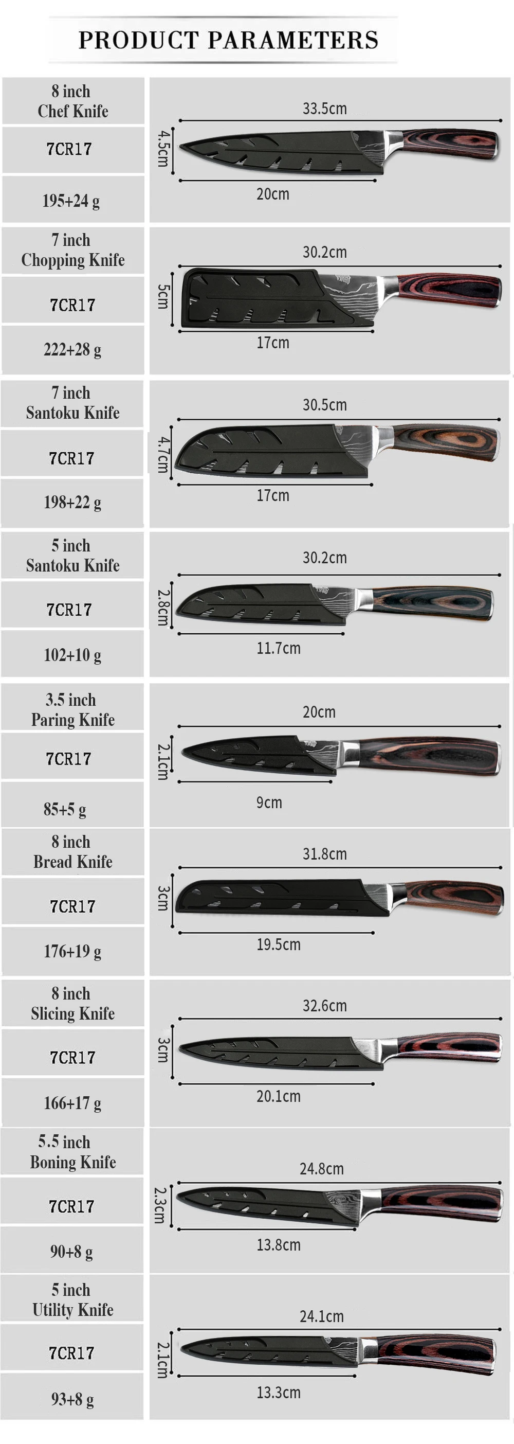 Knife Size8"7"5.5"5"3.5" inch Knife