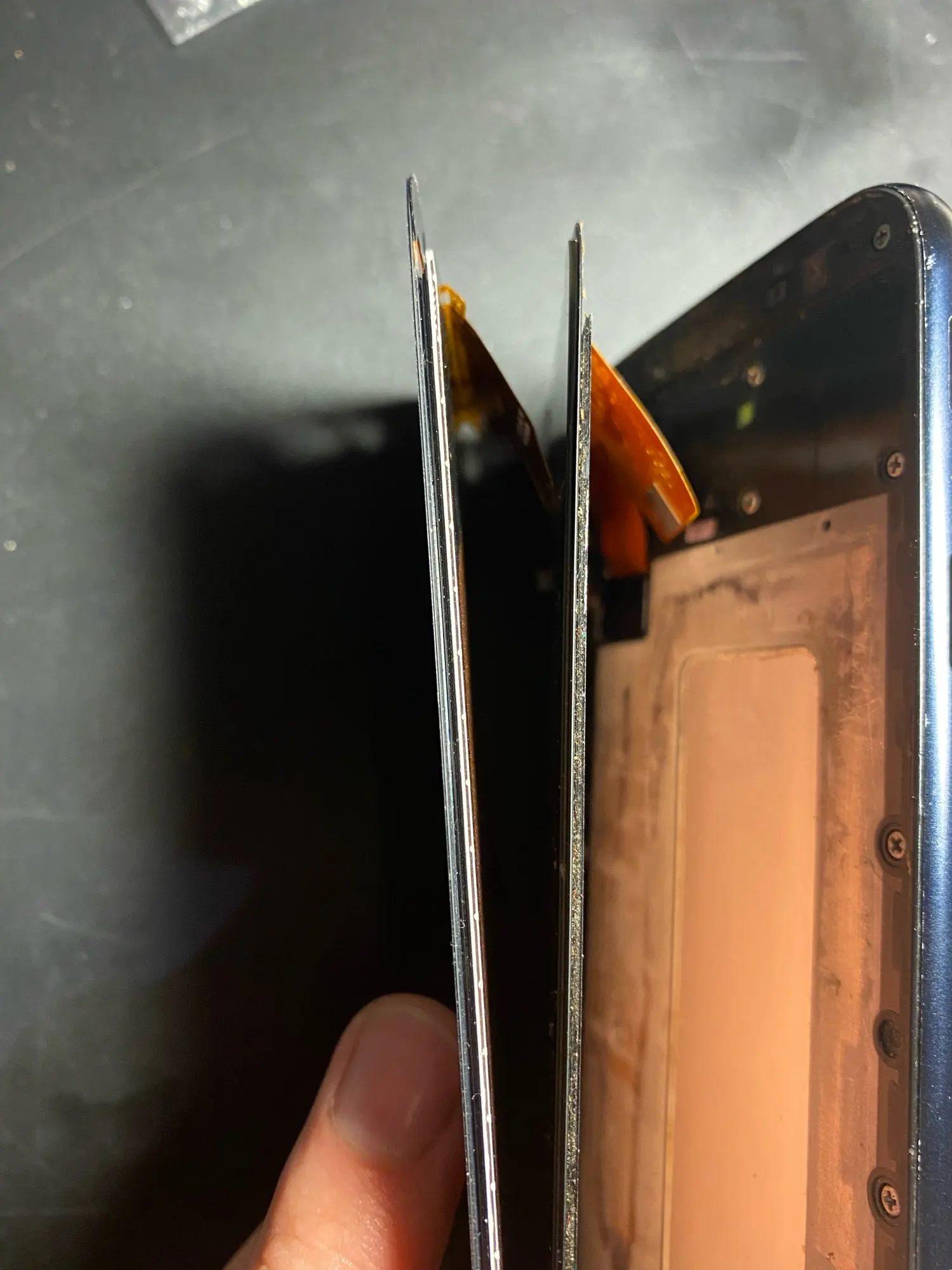 толстый дисплей, свет темный, при установке натягивается шлейф и выключается тел.