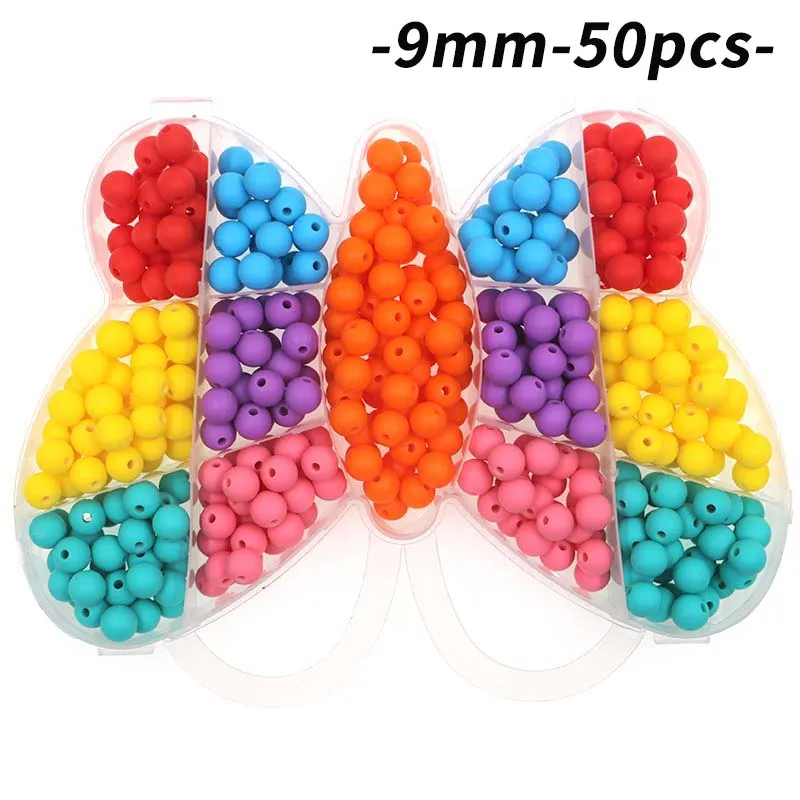 50 шт., силиконовые бусины для прорезывания зубов, 9 мм