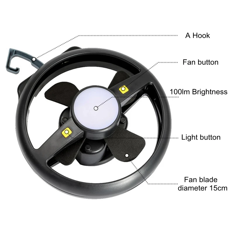 Многофункциональный портативный фонарь 2 в 1, светодиодный походный вентилятор, лампа, USB, перезаряжаемый, подвесной вентилятор для палатки, освещение для походов, рыбалки