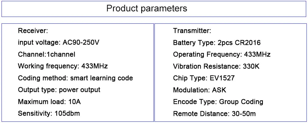 1. Как Очистить код: * Нажмите кнопку «сопряжение» на плате 8 раз, мигнет свет, Код Очистки пройдет успешно. 2. Как настроить рабочий режим: Сначала включите питание, один раз нажмите кнопку «сопряжение» на плате коммутатора, загорится индикатор, приемник будет ожидать сопряжения. * Блокировка бега (Мгновенная): нажмите «сопряженная Кнопка» один раз * Самоблокировка: дважды нажмите «сопряженная Кнопка» * Блокировка: трижды нажмите кнопку «сопряжение», затем нажмите кнопку, затем кнопку B