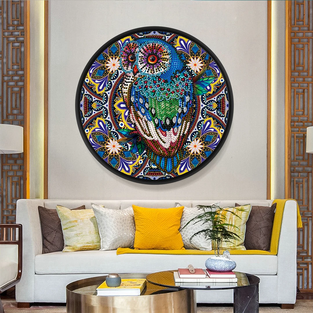 5D DIY Алмазная картина в круглой раме с кисточками, Настенная картина полностью специальной формы с животными, совами, картина с пейзажем, Алмазная мозаика с рамкой