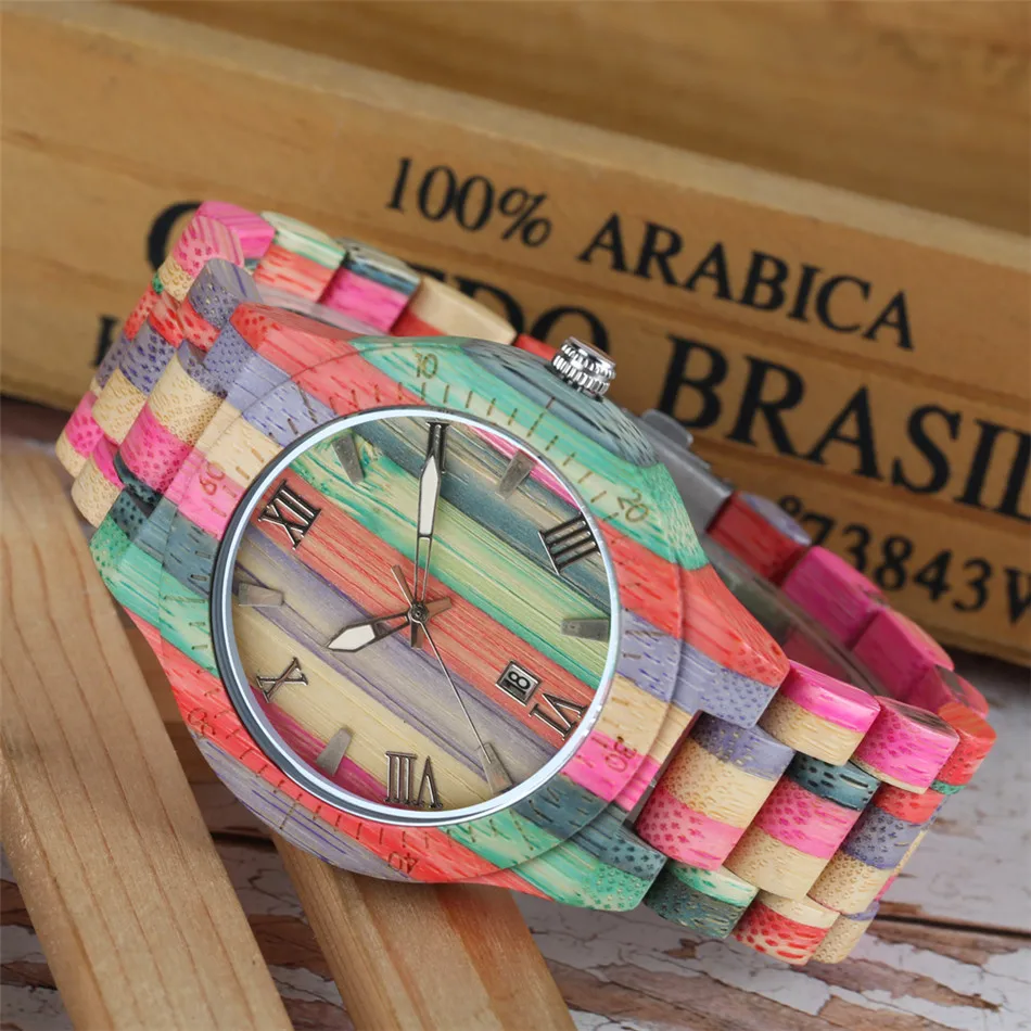 Женские кварцевые часы из бамбука, деревянные часы, парные часы, натуральный разноцветный браслет для влюбленных, новые деревянные наручные часы